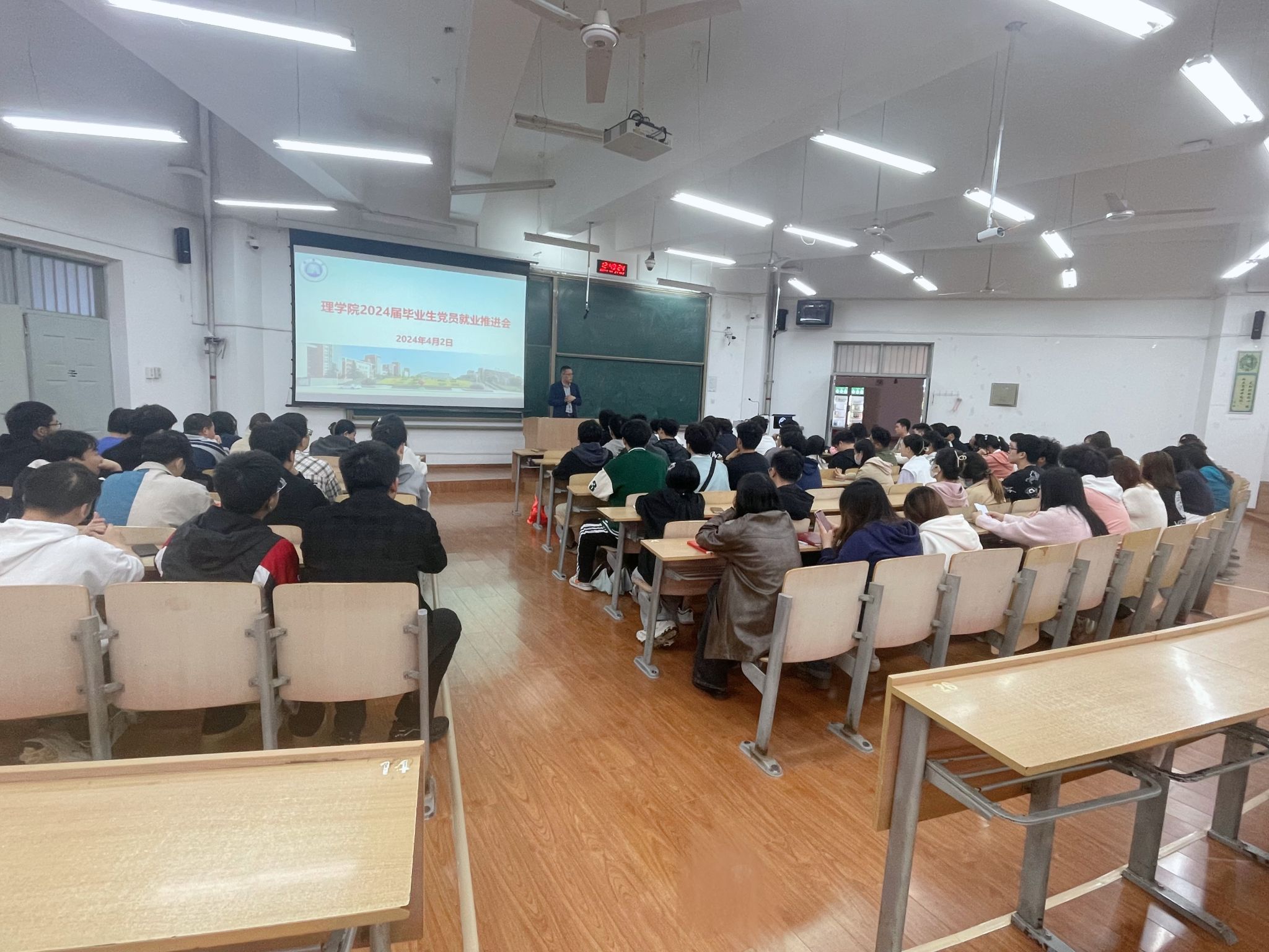为全力做好2024届毕业生就业工作,进一步发挥毕业生党员的榜样示范作用,4月2日,2026年国际足联世界杯在临潼校区B133教室召开2024届毕业生党员就业推进会,公司党委副书记文毅、就业辅导员高丽君、公司研究生及本科毕业生党员共140余人参加。
