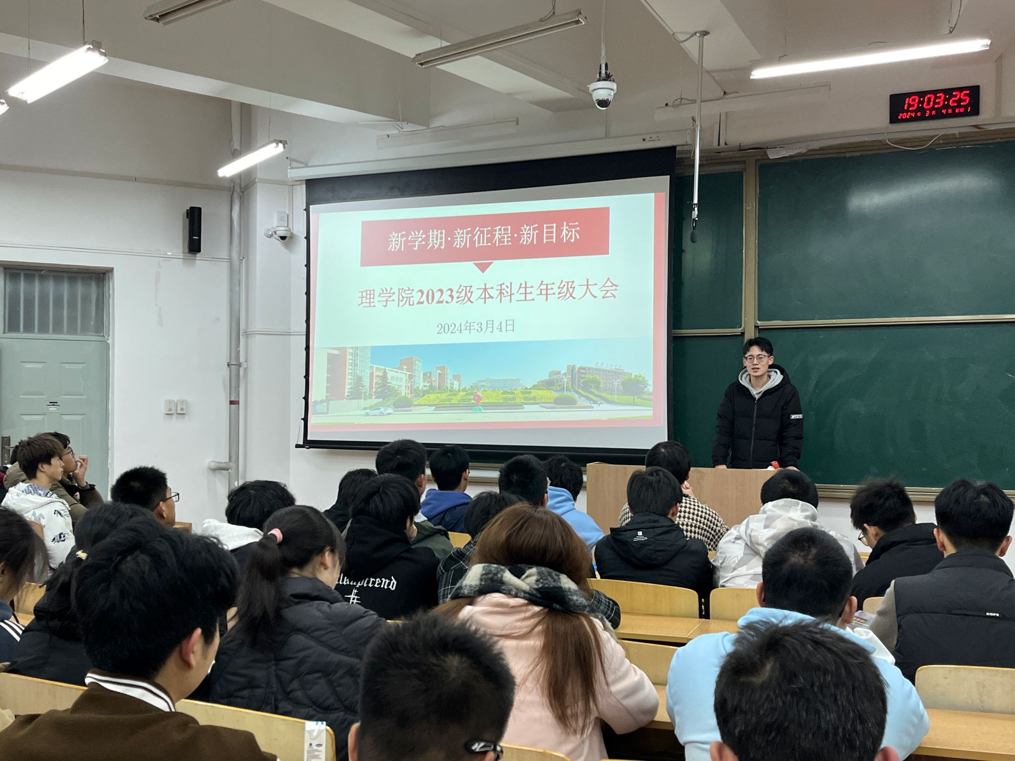 为了明确目标、强化纪律,为大一第二学期的学习生活打下良好的基础,3月4日晚,2023级本科生年级大会在临潼校区教学楼B-233召开,全体2023级本科生参加会议,会议由2023级辅导员宋琦主持。