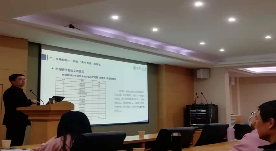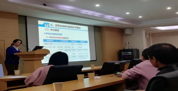首先,经理马盈仓教授就培训会的目的和必要性进行强调。随后,刘晓喆处长就师德师风、学科与科学研究等内容进行了简洁而又清晰地讲解。臧国强部长结合自己的工作实际,对研究生奖助政策和研究生日常管理等内容给出了生动而又详实的介绍。黎云玉副经理详细介绍了学硕与专硕的差异以及学位论文送审等内容。