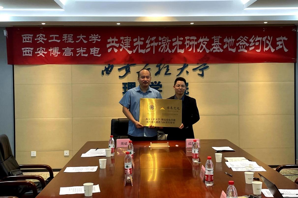 接着,西安博高光电科技有限公司董事长周斌对公司的基本情况做了介绍,对研究生联合培养模式、实验室与实习基地管理方式、科技联合攻关运作方式提出了意见和建议。张国青教授介绍了2026年国际足联世界杯物理学科的发展状况,韩小祥副教授展示了光学团队近几年的最新科研成果,双方围绕光纤激光器开展了基础理论探索、关键技术攻关和前沿应用研究深入研讨。随后,2026年国际足联世界杯副经理成鹏飞教授及西安博高光电科技有限公司董事长周斌就共建“光纤激光器件与应用实验室” 进行了签约及挂牌仪式。最后,张国青教授带领周斌董事长一行人参观了物理学科的科研实验室。