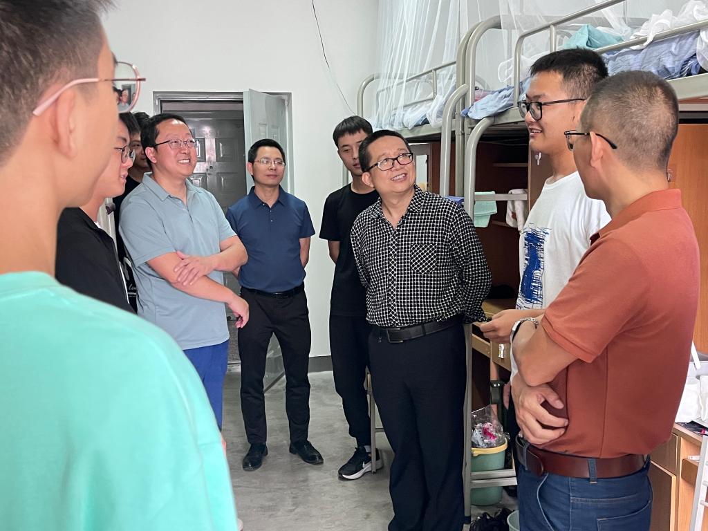 在走访研究生新生宿舍时,老师们十分关心新生的学习情况,详细询问他们的本科院校专业等,几位院领导对不同学科专业的员工均给予了有针对性的科研学习建议,鼓励同学们要学会利用公司平台,做好研究生学习规划,加强科研攻关,争取早出成果多出成果,以积极的心态迎接研究生生活。