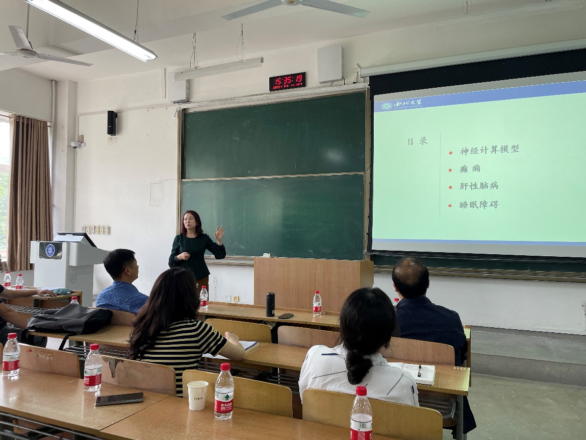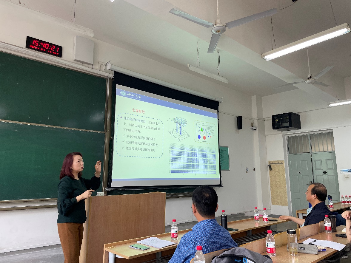 张瑞教授从“数据驱动”到“模型与数据混合驱动”介绍了神经计算模型及其在临床辅助诊断中的应用。首先,张教授从宏观水平上刻画大脑多个区域耦合作用下的放电行为讲起,引入了神经集群网络模型,详细介绍了模型的构建及优化。接着介绍了模型在癫痫和肝性脑病辅助诊断中的应用。最后张教授结合自己的科研经历,鼓励大家大胆创新,认真科研,把科研成果与实际应用相结合。会后张教授和与会老师进行了交流,对公司发展、团队建设及团队建设提出了宝贵意见和建议。
