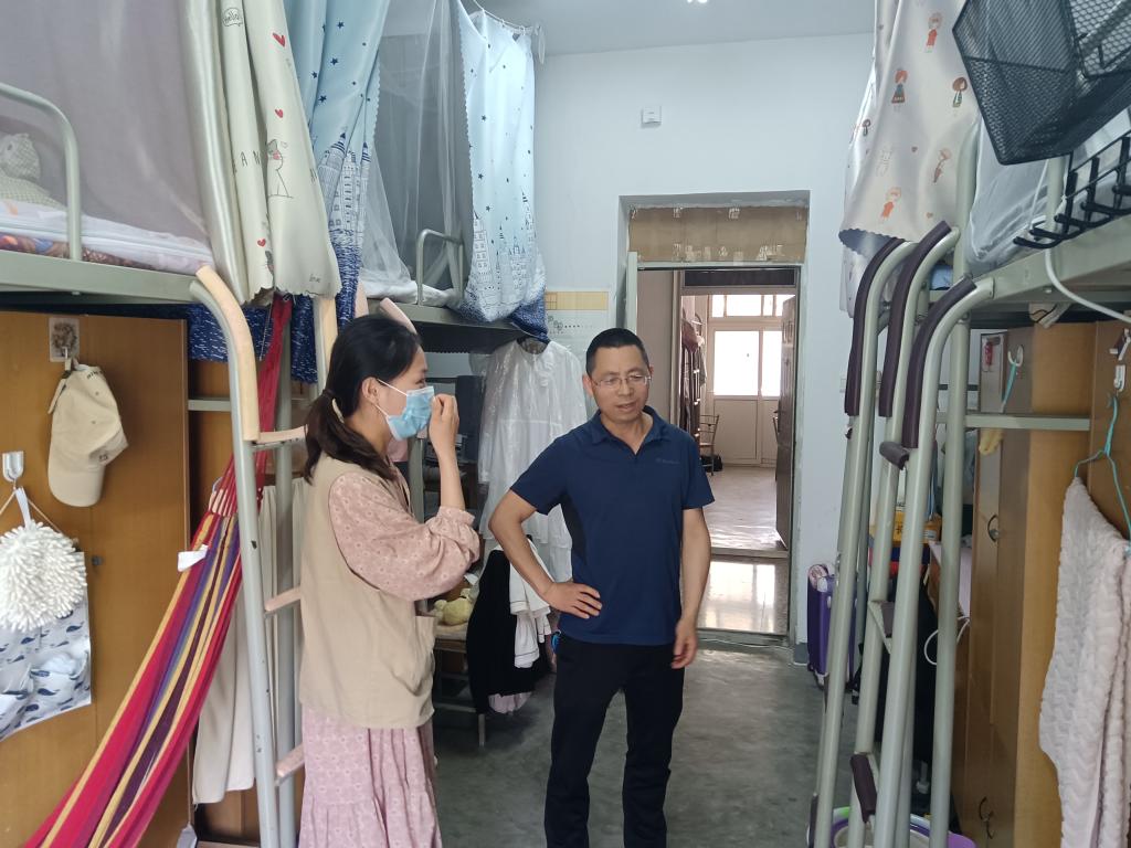 在走访毕业生宿舍过程中,老师们细致耐心地询问2019级毕业生的毕业设计(论文)进度、就业情况和思想生活状况,并与学业、就业困难员工一对一谈心谈话,表示公司会为所有有需要的同学提供充分的帮助和指导。随后,老师们来到其他年级和研究生员工宿舍,仔细检查宿舍卫生,排查安全隐患,叮嘱员工注意自身健康监测,同时就饮食起居、朋辈关系、学业发展等话题与同学们进行了亲切交流。老师们在走访中鼓励同学们要加强自我学习管理,夯实专业基础,也要利用课余时间增强体育锻炼,保证身心健康,遇到困难及时向辅导员和公司反映。
