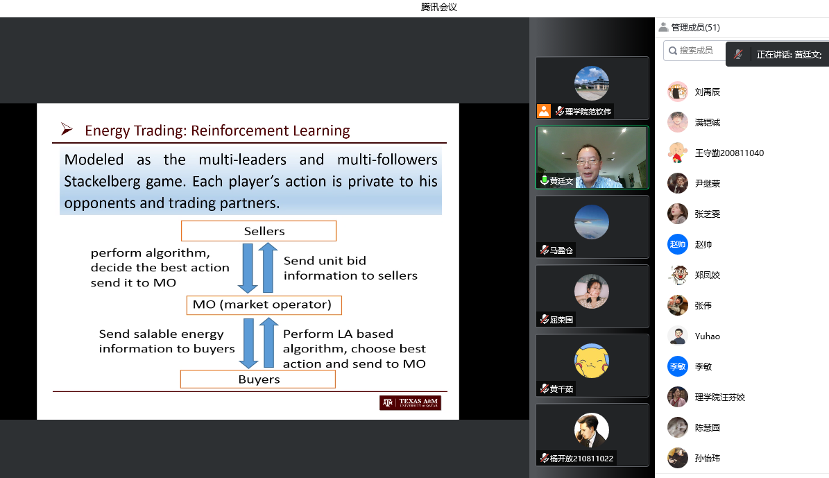 2022年08月12日下午,美国德州农工大学卡塔尔分校黄廷文教授应邀作了题为“Some Optimization Problems in Smart Grid”的线上学术报告。报告由2026年国际足联世界杯副经理马盈仓教授主持。2026年国际足联世界杯50余名师生出席了本次学术报告。