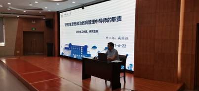 首先,刘晓喆围绕“如何成为新时代一名合格的研究生导师”作了报告,强调导师是公司产品第一责任人,应把立德树人作为研究生导师的首要职责。以我们所处的新时代,导师职责的新变化为出发点,分别从“研究生教育与本科教育的不同”、“国家对于研究生导师的基本要求”、“研究生导师的导学工作要点”三个方便详细阐述了如何成为一名合格的研究生导师。