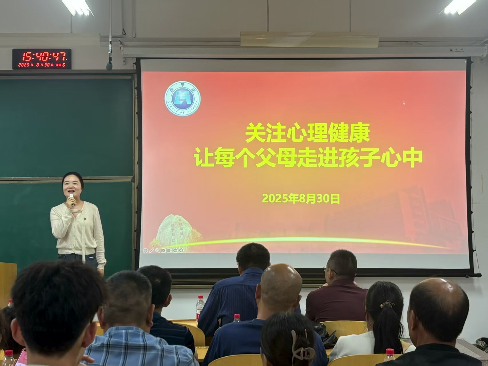 接着,2025级新生辅导员宋晓盼围绕老员工心理健康教育主题,强调了家校协同呵护员工成长的重要性。她指出,大学新生会面临环境适应、人际交往与学业压力等多重挑战,提醒家长密切关注孩子的情绪变化,多倾听、常沟通,与辅导员保持及时、畅通的联系,共同构建积极有效的心理支持与引导机制。