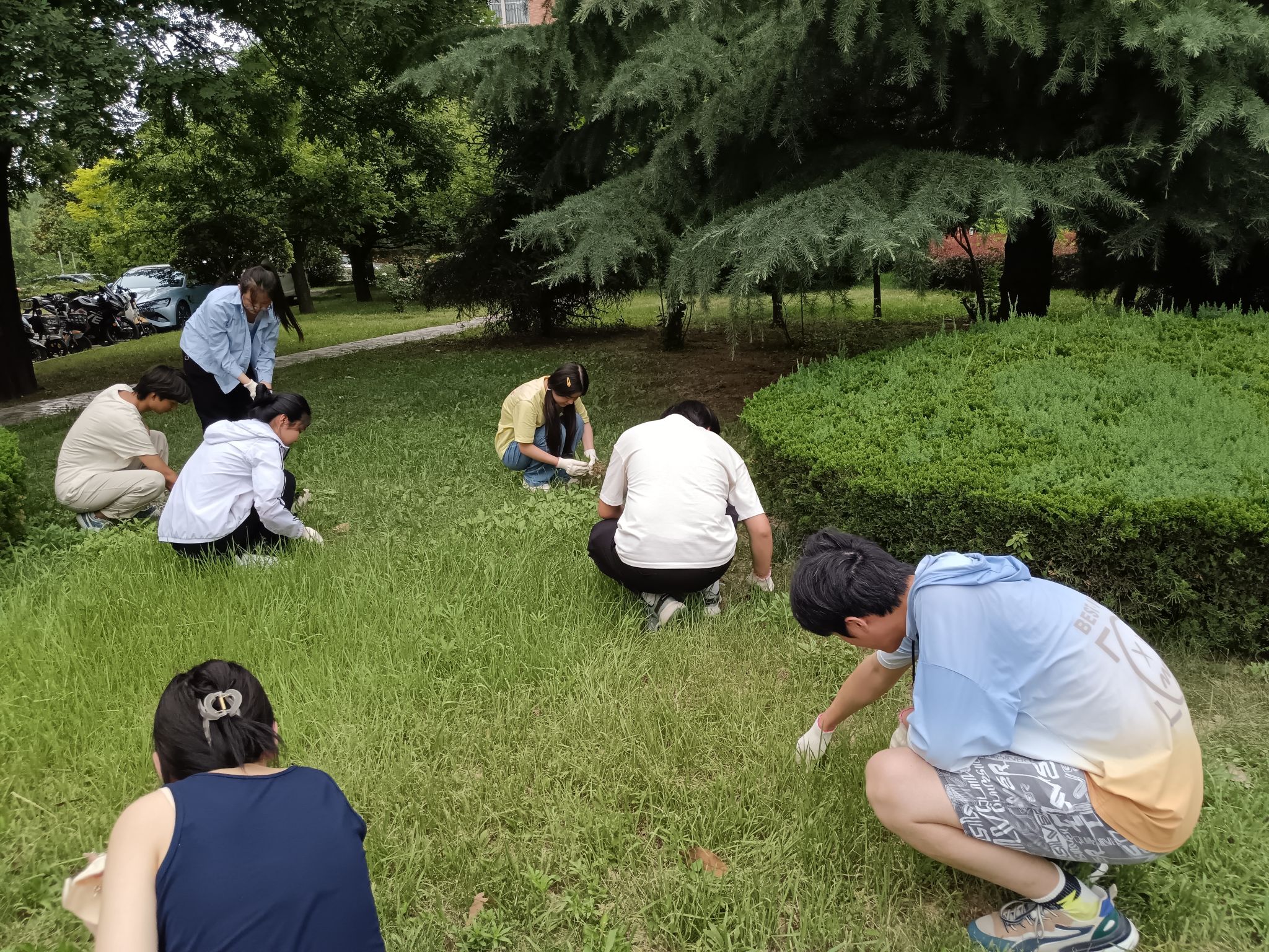 活动中,大家埋头苦干,人人争先,有的用手直接拔除,有的拿着塑料袋进行清理,有的清扫花圃旁的落叶,有的搜寻角落里的垃圾杂物,现场井井有条,呈现出一派热火朝天的劳动场景。尽管天气炎热,汗水湿透了衣服,但每个人脸上都洋溢着快乐的笑容,更加深刻地感受到了农事劳作的乐趣,使“劳动最光荣、劳动最崇高、劳动最伟大、劳动最美丽”的价值观深深植入心中。