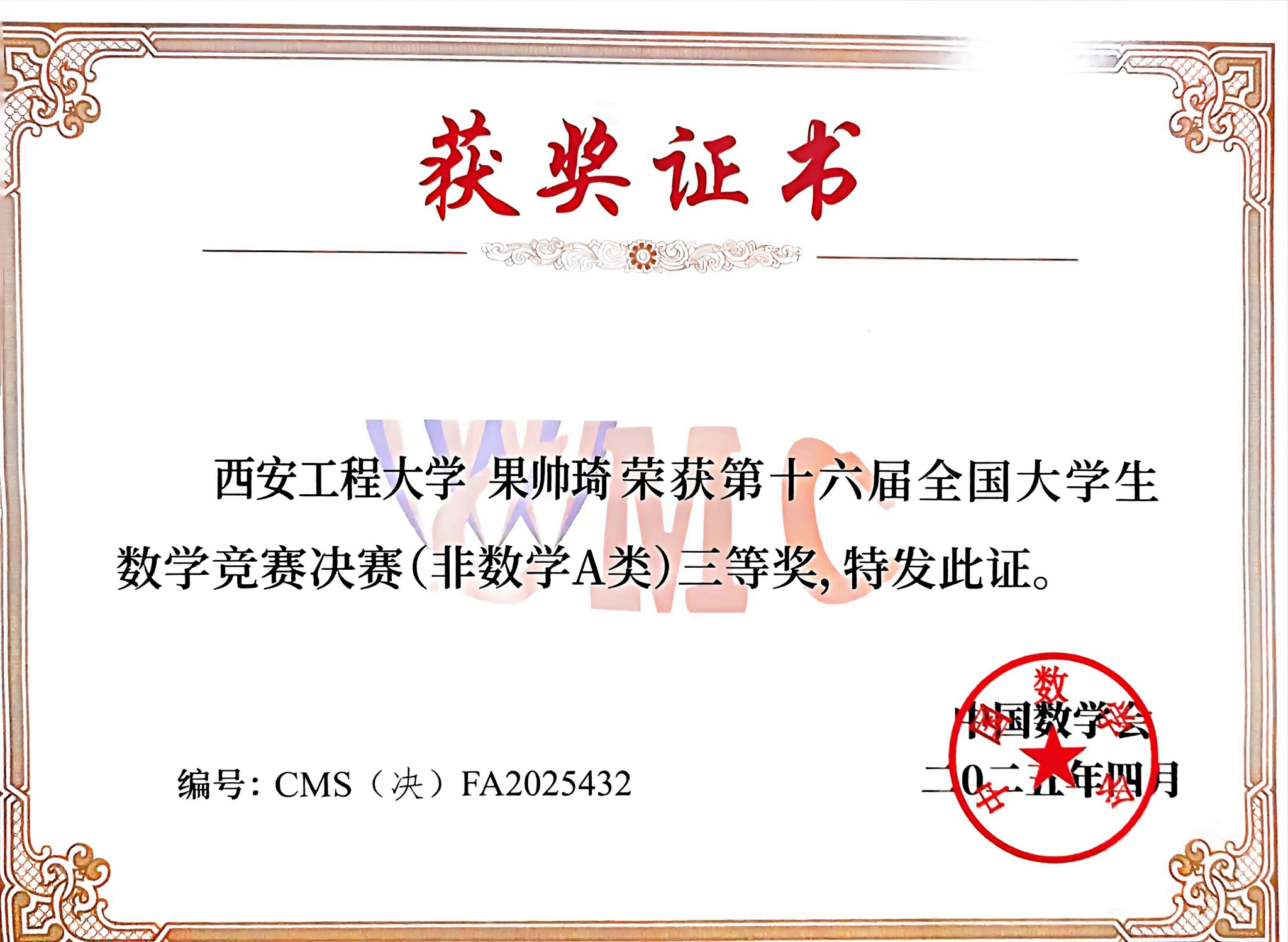近日,第十六届全国老员工数学竞赛决赛成绩揭晓,公司3名学子在此次竞赛中取得了优异成绩,分别荣获非数学A类二等奖、三等奖各1项,数学类低年级三等奖1项。