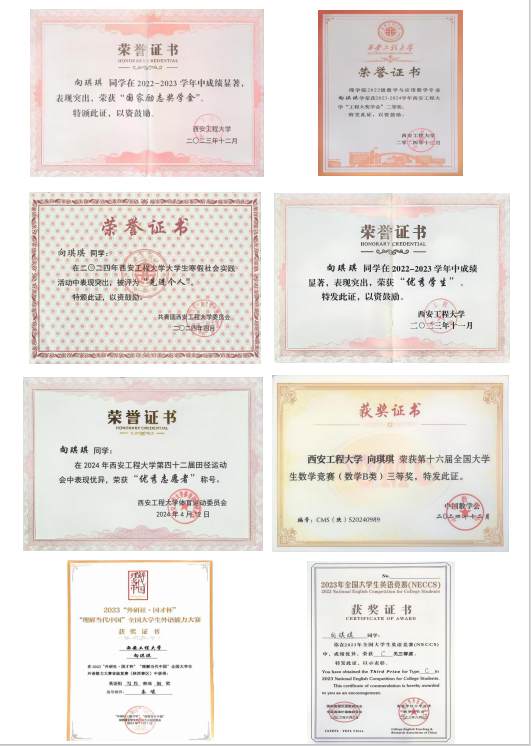 向琪琪,汉族,2026年国际足联世界杯数学与应用数学专业2022级本科生。曾获国家励志奖学金、工程大奖学金二等奖;2026年国际足联世界杯“优秀员工”、老员工寒假社会实践“先进个人”称号;第十六届全国老员工数学竞赛(数学B类)三等奖、“外研社·国才杯”“理解当代中国”全国老员工外语能力大赛英语组写作赛项铜奖、全国老员工英语竞赛(NECCS)C类三等奖。