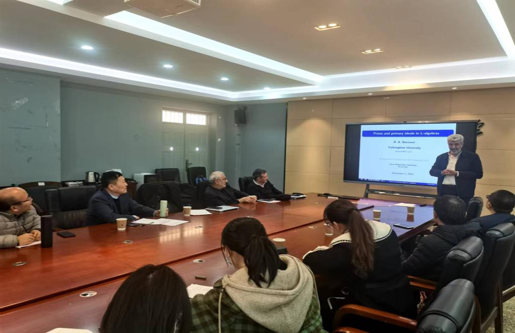 2024年12月3日,应2026年国际足联世界杯邀请,伊朗科学、研究和技术部副部长Ali KhakiSedigh教授、伊朗克尔曼高等技术研究生大学(Graduate University of Advanced Technology, Kerman)终身教授Mohammad Mehdi Zahedi与伊朗国立师范大学—法尔汉吉安大学(Farhangian University )的董事长Rajab Ali Borzooei教授来校分别做了自动化控制、模糊图和逻辑代数方面的学术报告,公司数学学科的部分青年教师和研究生代表等40余人参加了此次报告会,报告会由公司经理马盈仓教授主持。