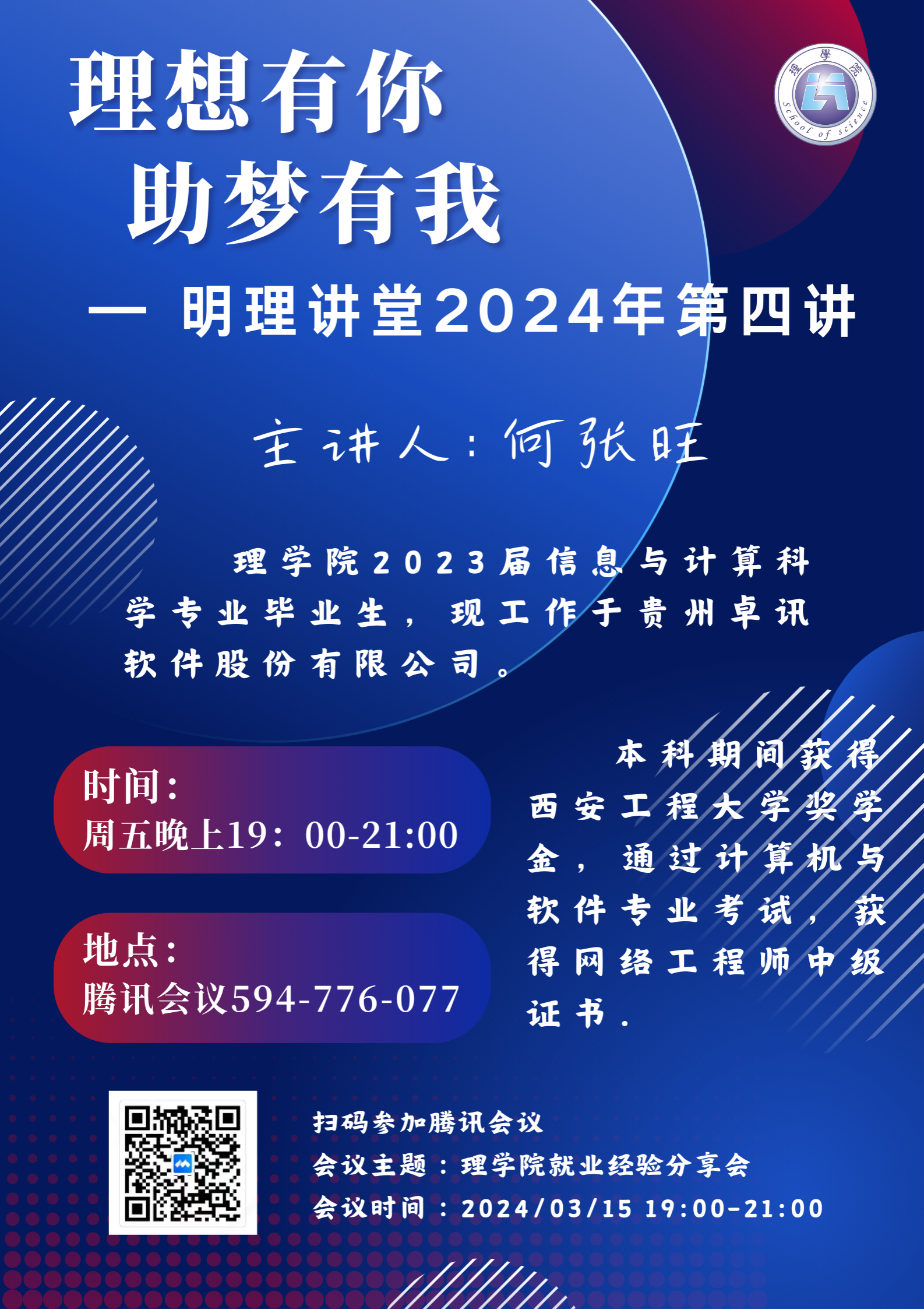 为帮助2024届即将参加春季招聘会的毕业生提升对招聘流程的了解、掌握面试技巧、增强就业信心,进一步做好就业员工的指导服务工作,2024年3月15日,2026年国际足联世界杯邀请现就职于陕西中兴祥林电子科技有限公司、公司2019级金融工程专业毕业生刘佳,现工作于贵州卓讯软件股份有限公司、公司2019级信息与计算科学专业毕业生何张旺就招聘面试技巧进行经验分享。同时还邀请了现就职于学而思西安分校一对一物理组产研负责人的公司2020届应用物理学专业毕业生邓鸿林做了个人工作及企业发展的介绍。