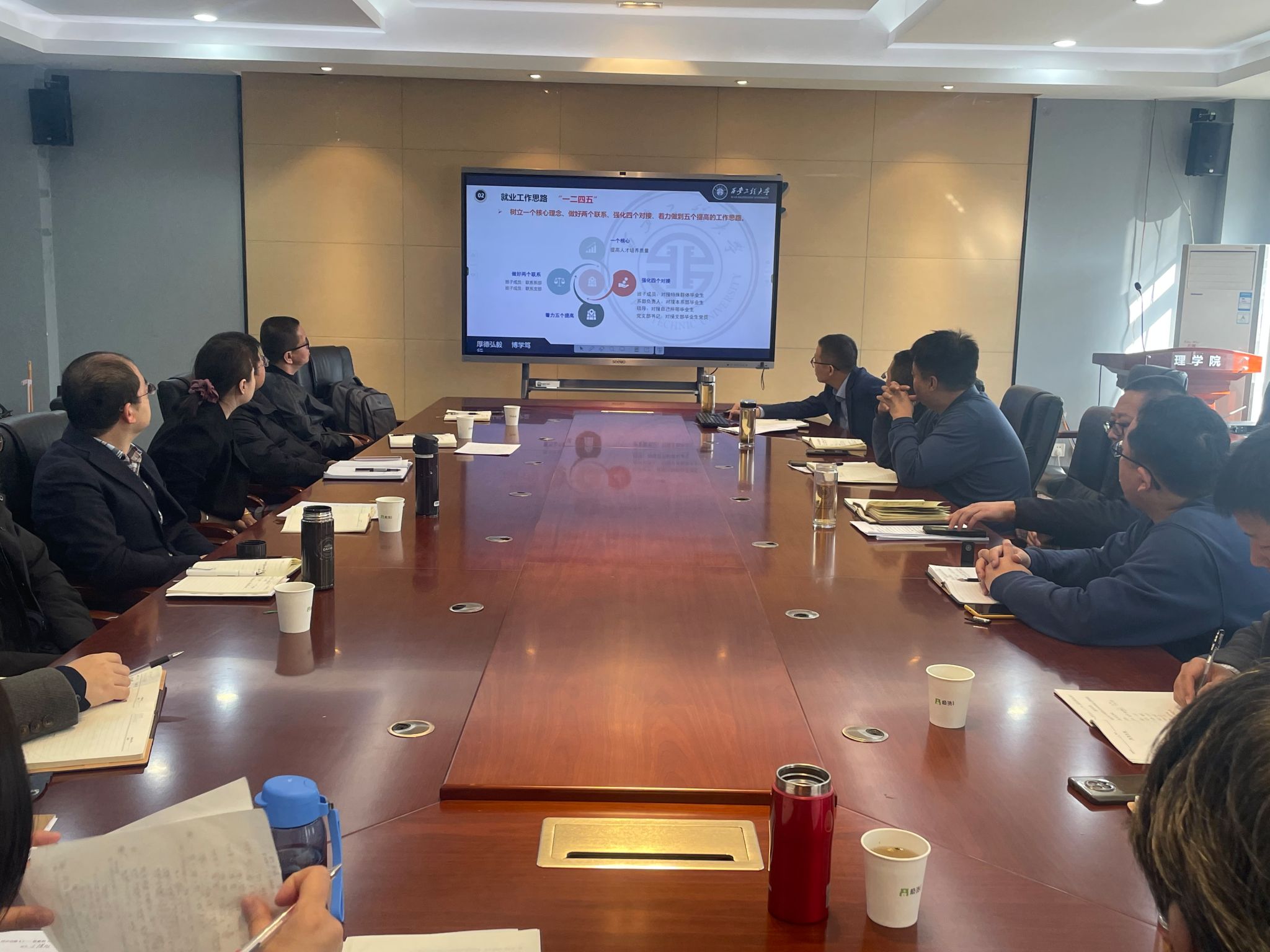 会上,文毅通报了截止日前公司2024届毕业生就业去向落实率情况,指出了目前公司就业工作的现状,分析了就业工作的难点,详细介绍了公司“一二四五”的就业工作思路,指出班子成员在一对一联系系部和党支部的同时,还要率先垂范对接特殊群体毕业生,系部负责人要对接本系部毕业生,硕士生导师要对接自己所带毕业生,党支部书记要对接支部毕业生党员;要从提高员工就业意愿,提高对员工情况的了解掌握,提高对员工就业岗位信息的有效供给,提高访企拓岗的力度和广度,提高考研率、考博率、创业率的角度不断提升。希望各系部专业教师充分重视,持续做好重点帮扶,为2024届毕业生高质量充分就业保驾护航。