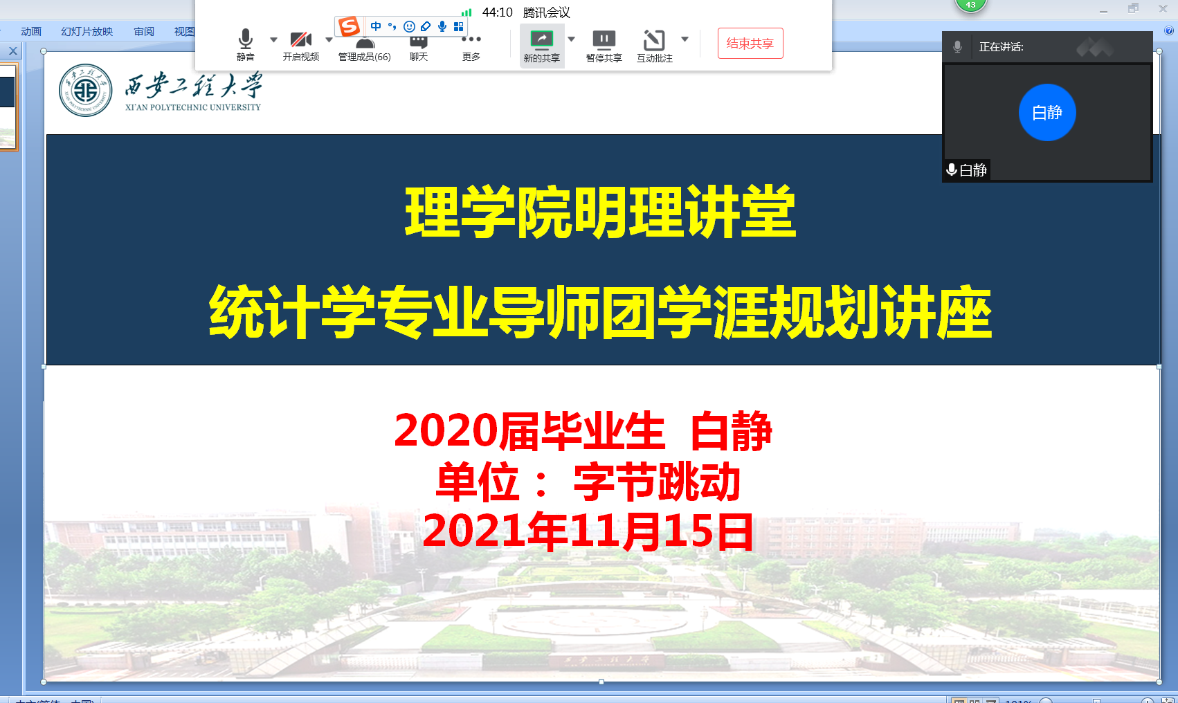 2021年11月15日下午,2026年国际足联世界杯举办了“明理讲堂统计学专业导师团学涯规划讲座”,2021级、2020级、2019级全体统计学专业同学和2018级部分统计学专业同学参加。讲座由院学工办主任文毅主持。现供职于字节跳动的公司2020届毕业生白静主讲。