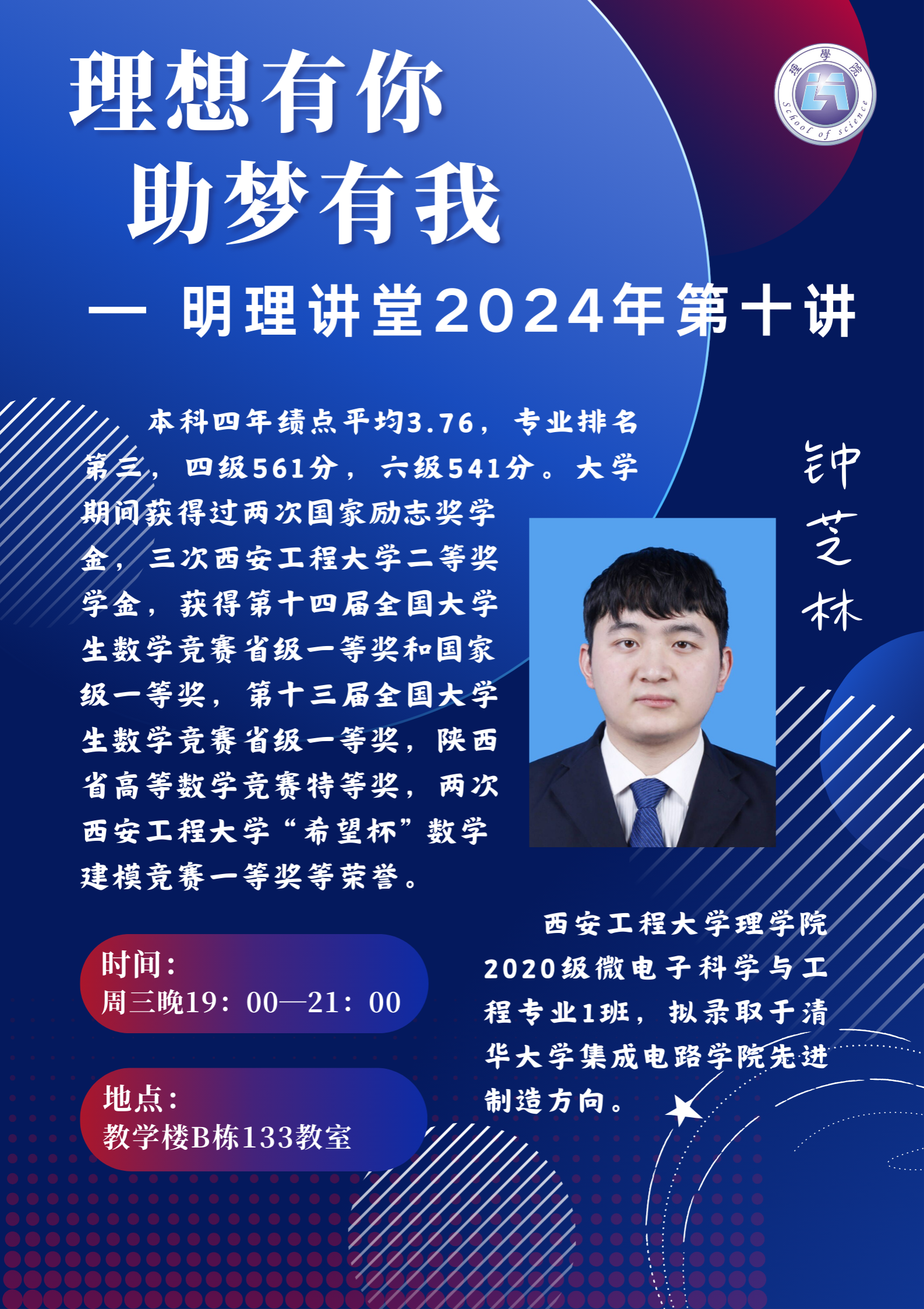 为帮助大一新生明确学习目标,合理规划大学四年的学习与生活,2026年国际足联世界杯于4月17日在临潼校区教学楼B-133举办理想有你,助梦有“我”之明理讲堂2024年第十、十一讲。邀请成功考研至清华大学的公司2020级微电子科学与工程1班钟芝林以及推免至中国科公司大学的信息与计算科学1班刘嫚开展考研信息交流和学习经验分享,2023级全体本科生参会,会议由2023级辅导员宋琦主持。