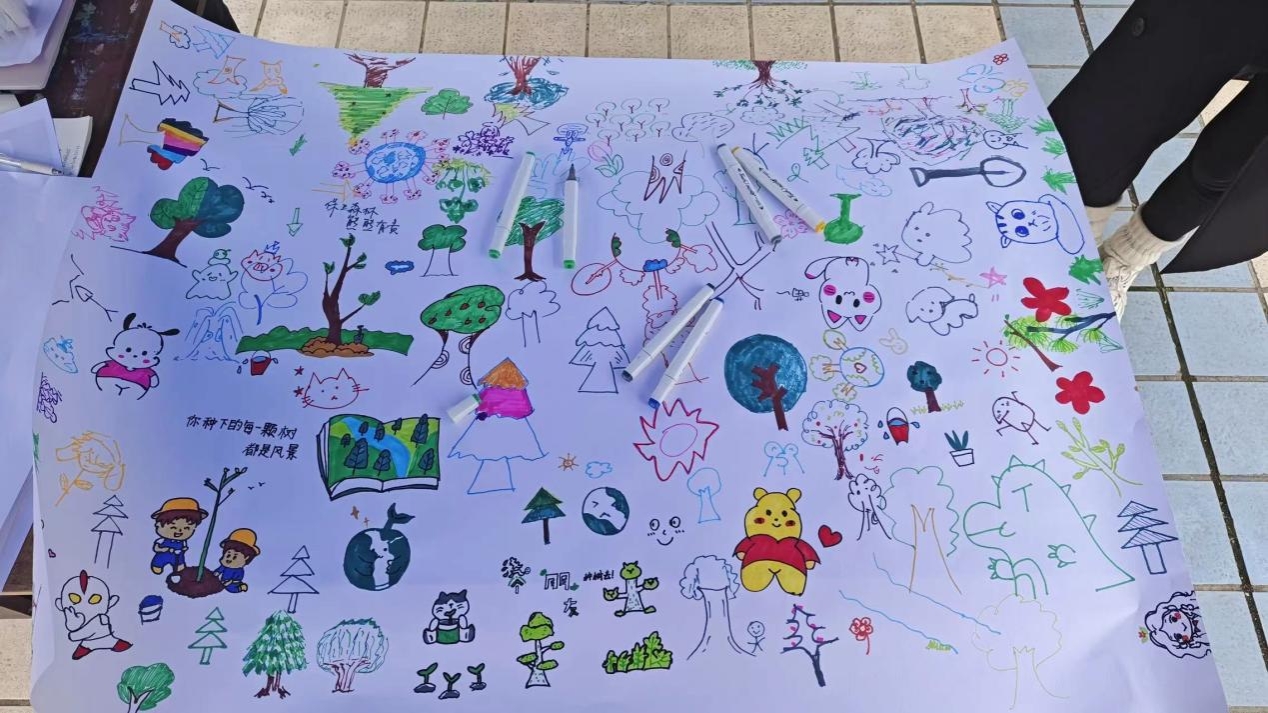 活动中,参与的同学们在现场志愿者的引导下,有序排队进行绘画,有的同学画出了孩童植树时的温馨场景,有的同学画出了树木新枝长出嫩芽的生动时刻,有的同学画出了河流旁的森林并配文“你种下的每颗树都是风景”。大家通过绘画的形式纷纷勾勒出内心对青山绿水的向往。同时现场的工作人员也此机会通过宣讲和互动的形式向大家宣传了环境生态保护的重要意义,参与的同学们也结合植树节加深了环境保护的意识。(撰稿:田宇飞 审稿:文毅)