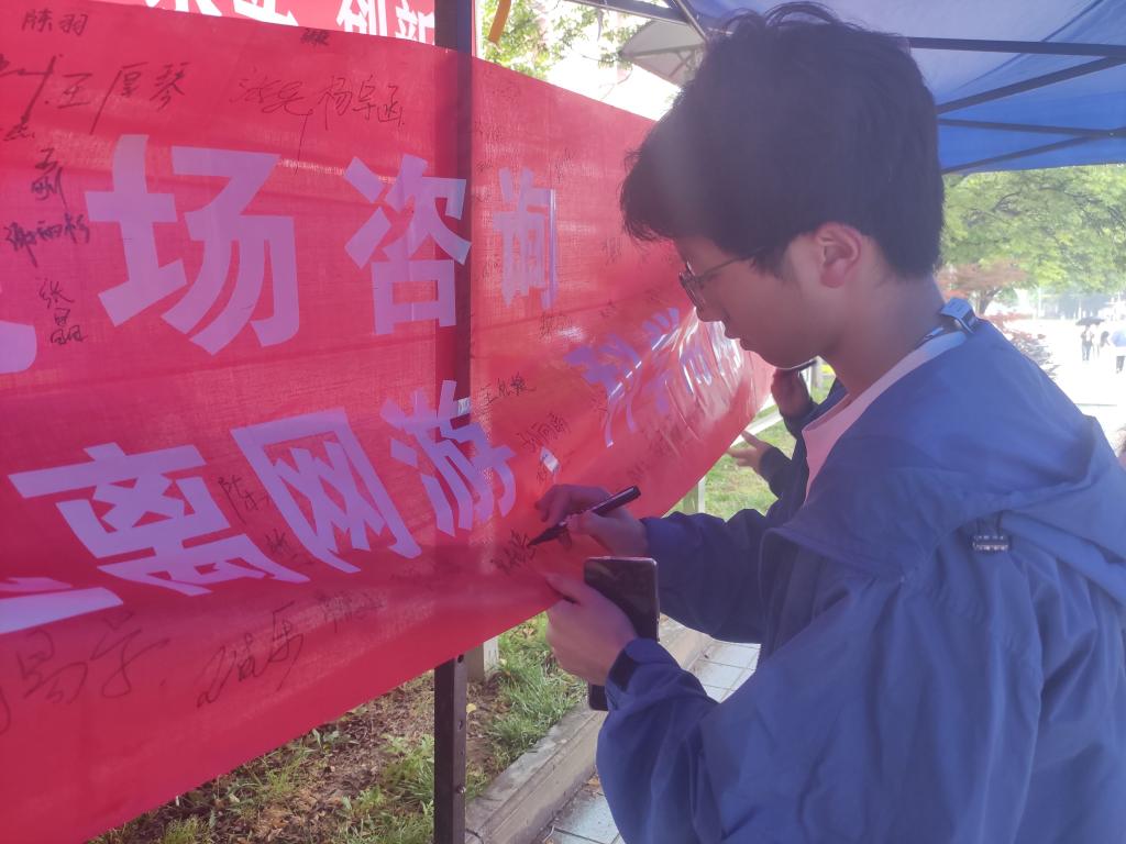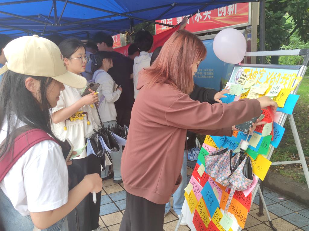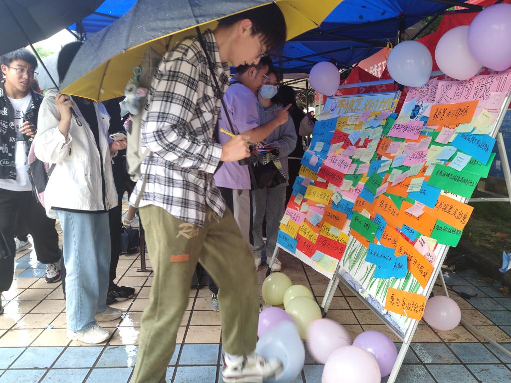 活动现场,虽细雨蒙蒙,却人流如潮,参与师生热情高涨。在“不被定义的我们”和“踩气球”环节中,参与师生通过撕掉特定的标签、踩气球来摒弃负面情绪、提升自我信心;现场咨询环节,同学们向老师请教学习生活中遇到的困惑,老师们给予了积极的回应和专业的解答;参加活动的同学们都领到了一张“科学用网知识普及书签”,旨在通过特定书签提醒同学们不要沉迷网络游戏,要科学用网提升自己的学习能力和综合素质;活动最后,参与师生还纷纷在“百人百签”横幅和展板上留言寄语。参与的同学们纷纷表示通过参加活动,既愉悦了心情,又学到了一些受用的心理健康知识。