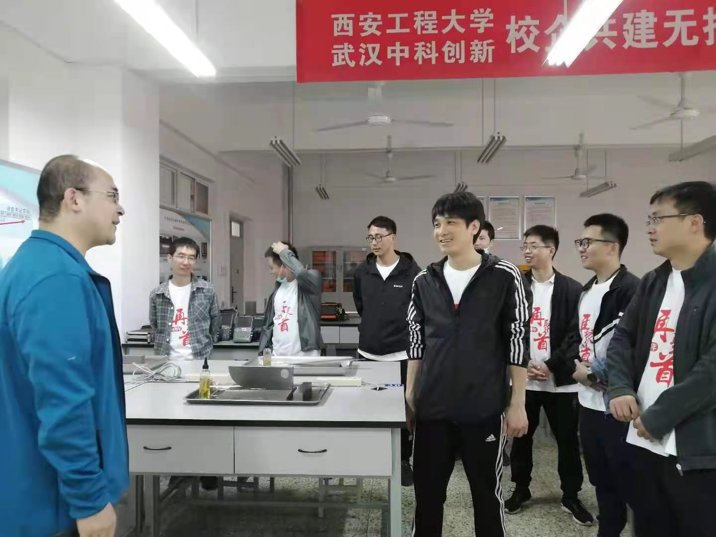 员工们一行分别在教学楼教室召开了题为“重返校园,追忆青春”的主题班会,分享了各自近年来的发展情况;在图书馆、食堂、环道等校园各处他们学习生活过的地方追忆青春,相谈友情;在物理实验楼参观了实验室,与老师进行了热情交流,表达了对老师的感谢。院学工办主任文毅代表公司对员工们返校表示欢迎,与员工们亲切交流,希望员工们继续关心支持母校的发展,常联系多沟通,和母校共同进步成长,也期待员工们创造更加辉煌的成绩,还给员工们赠送了公司纪念品。