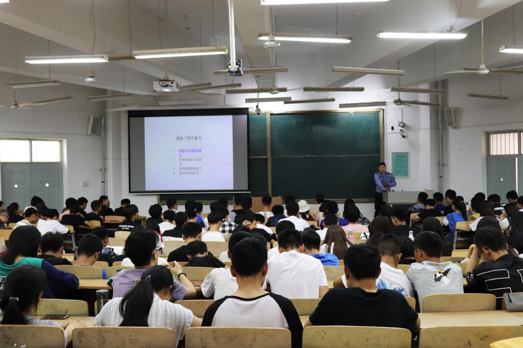 讲座中,樊聪教员特别详细讲解了校园火灾事故发生的原因、存在的安全隐患以及预防措施等,以图文并茂、深入浅出的方式,介绍了各种火灾现场特点、正确的灭火方法以及针对不同场所、不同类型火灾如何正确自救和向外界救援做了简明扼要的讲解。樊聪教员语言风趣幽默,同学们热情认真,积极参与,讲座气氛十分活跃。