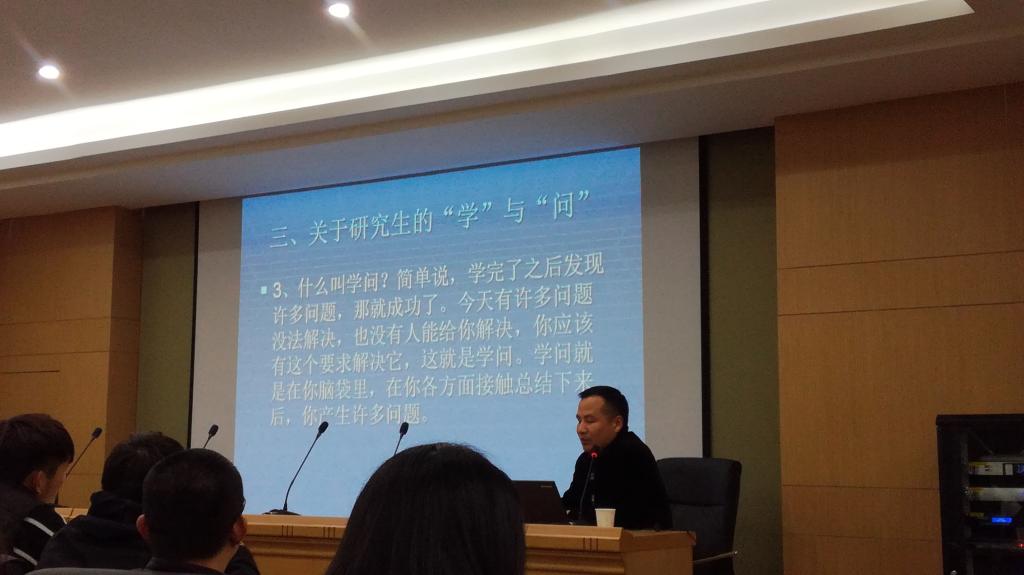 报告会上,郭真华教授以《怎么样当一名研究生》为题,以什么叫“研究生?”作为切入点,围绕研究生应该如何学习、如何撰写论文等同学们关心的问题,给同学们做了精彩的报告,赢得广大同学的阵阵掌声;会后,郭教授围绕研究生的“学”与“问”与在场同学进行了交流,围绕研究生创新能力如何培养等问题与在场的硕导、青年教师进行了深入的讨论。