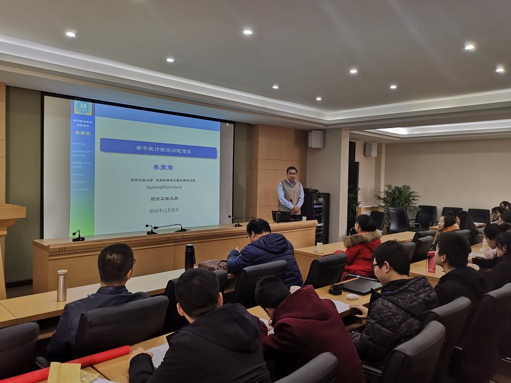 11月28日,北京工业大学博士生导师李高荣教授以广告等多媒体为例,介绍了如何运用参数方法建立模型,并将其用到研究若干统计前言问题上。随后围绕《An Introduction to Statistical Learning》、《纵向数据半参数模型》、《现代测量模型》这三本书的内容,介绍了用均方误差评判模型建立的思路。