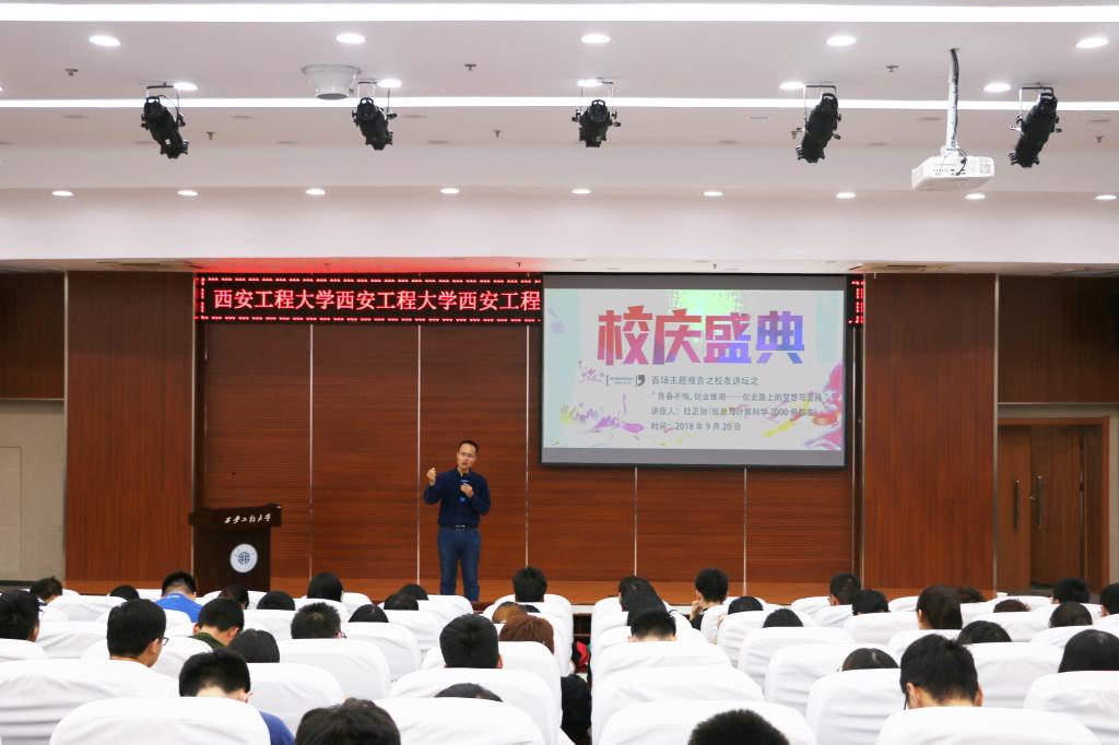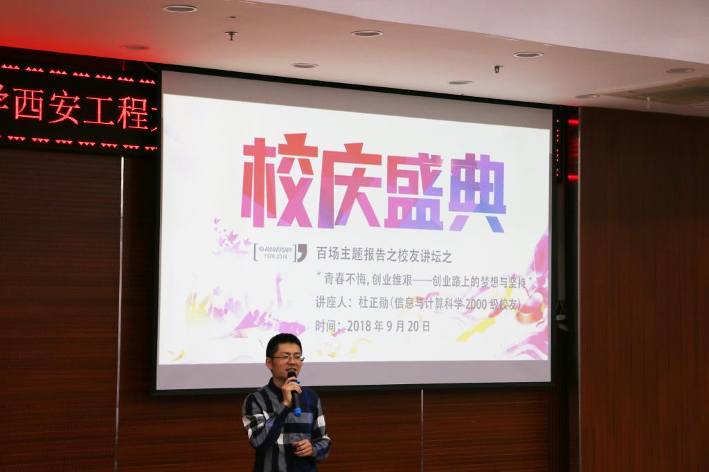 讲座上,杜正勋先生与同学们分享了个人曾经在母校学习生活的一些感悟,讲述了个人从西安辗转广州、东莞的初次艰苦求职经历,以及工作期间的单位调整。在毕业后的十余年从业期间,从初入职场的底层员工到工程师、项目经理、项目总监、公司副总经理,杜正勋先生向同学们讲述了自己工作中的众多“酸甜苦辣”小故事。有过在西安初次创业的惨淡收场,历练、总结、积累经验之后,他于2016年加入大学同班同学、西安小号角健康管理有限公司联合创始人兼总经理李明磊的创业团队中,举步维艰的创业故事更为吸引同学。杜正勋先生通过个人的从业、创业故事,给予同学们“欲成其事,贵在坚持;面对困苦,乐观处之”的人生启示。
