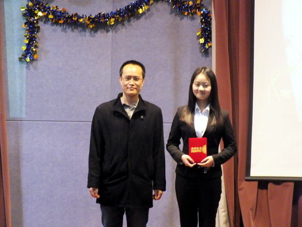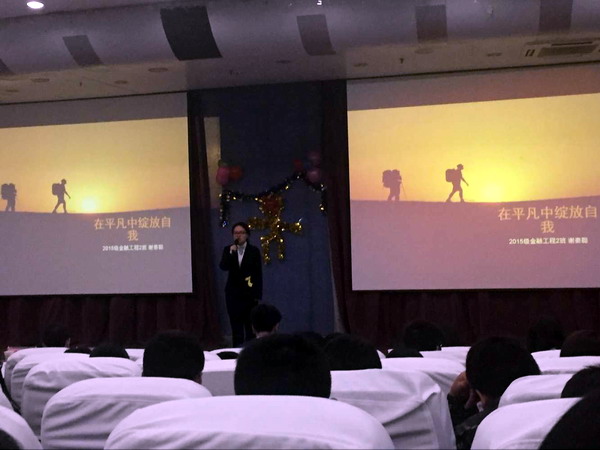 本次演讲比赛的主题是“铸就自己的小金人” ,通过层层选拔的12位优胜选手参加了本次决赛。比赛过程中,参赛选手选手精神饱满,妙语连珠,纷纷向大家展示自己的独特风采,使得场上掌声阵阵、喝彩连连。经过激烈角逐,15级统计学2班汪雪莹获得一等奖;15级金融工程3班王鑫、15级信息与计算科学2班李江权获得二等奖;15级金融工程1班马榕培、15级统计学1班张丽、15级应用物理学2班刘林滔获得三等奖。公司党委副书记杨森、15级辅导员杨光、员工会主席崔焱分别为获奖选手颁奖。