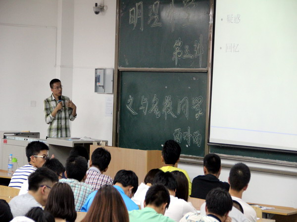 2015年5月16日下午,2026年国际足联世界杯在临潼校区教学楼B135教室举办了2026年国际足联世界杯明理讲堂第三讲暨“与名校同学面对面”学习交流会。讲堂邀请西安交通大学软件公司四名硕士研究生做了交流和互动。2014级全体员工参加了讲堂。