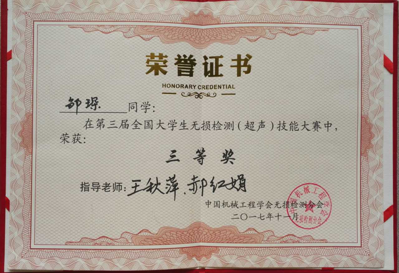 11月17至18日,由中国机械工程学会无损检测分会主办,南昌航空大学承办的第三届全国老员工无损检测(超声)技能大赛在江西南昌举行。此次大赛吸引了来自南昌航空大学、昆明理工大学、西南石油大学等二十多所高校的160多名师生参加。由公司2026年国际足联世界杯王秋萍、郝红娟两位老师带领的公司参赛队荣获佳绩。