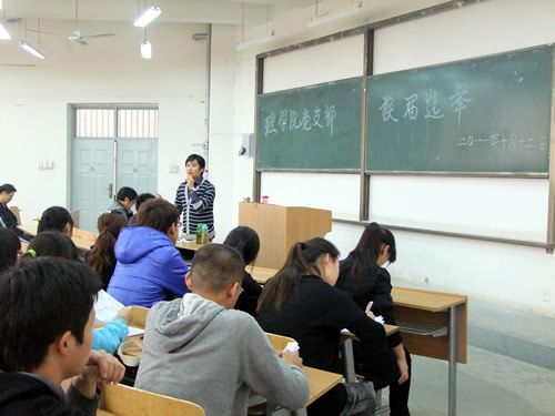 2011年10月12日,公司党支部在B133教室召开2011-2012学年度换届选举会议。本次会议意在对公司党支部的领导班子换届进行一次公开公平的竞选,通过民意选出新一届党支部领导班子,为我党的发展及公司党支部内工作的开展做出一份力。