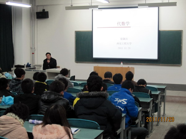 11月29日下午4:00,代数学知识讲座在教学楼C454顺利举行。本次讲座主要是有徐应吾老师主讲。10、11级的数学与应用数学和信息与计算科学两个专业的全体员工参加了本次讲座。