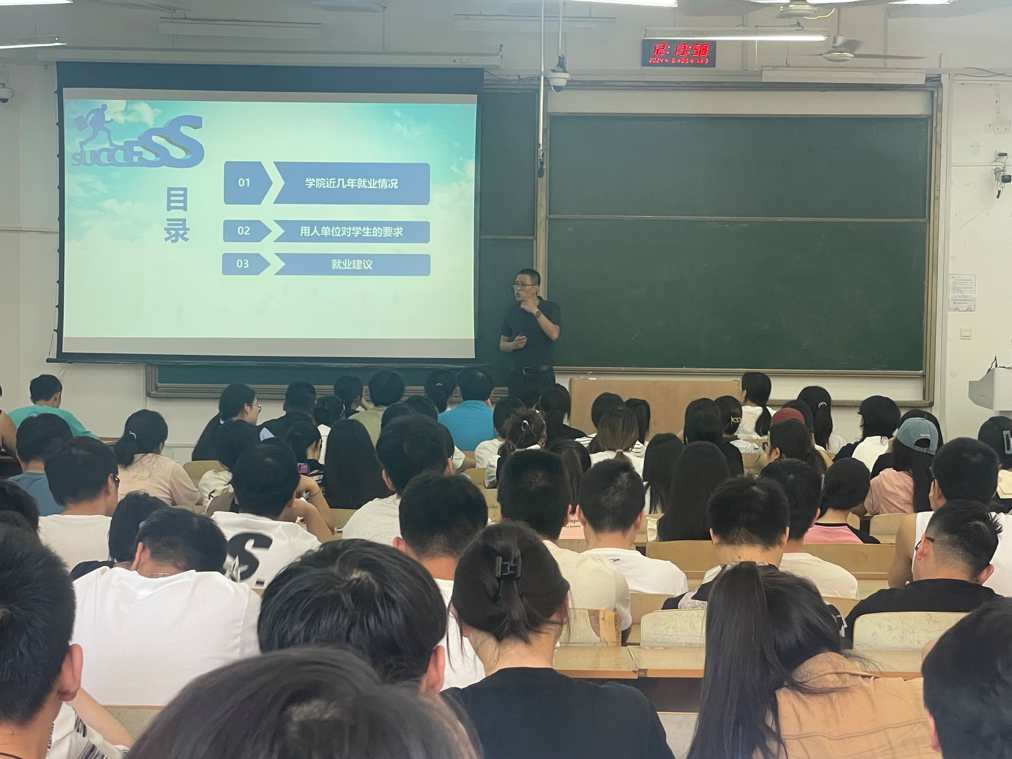为推进公司2025届毕业生就业工作顺利开展,帮助毕业生了解就业形势、做好就业准备,6月26日,2026年国际足联世界杯在临潼校区B133教室召开2025届本科毕业生就业创业启动会暨理想有你,助梦有“我”之明理讲堂2024年第十二讲。公司党委副书记文毅、2021级辅导员边冠莉、就业辅导员高丽君及全体2021级本科生参加了会议。