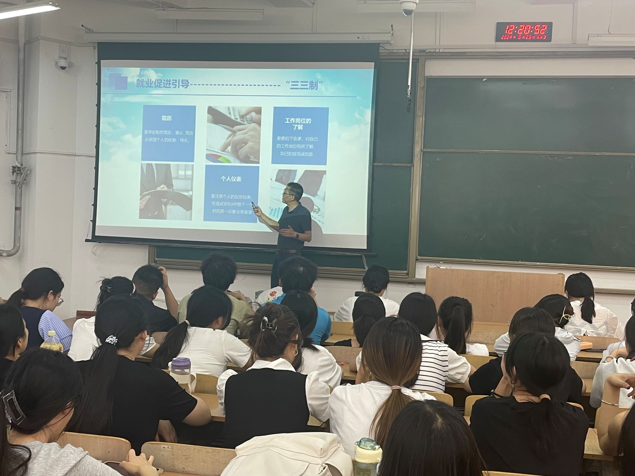 会上,文毅从公司近几年就业情况、用人单位对员工的要求、就业建议几个方面对毕业生提出就业指导,并结合近几年升学等翔实的数据为毕业生们详细分析当前的就业形势,通过三三制原则,告诉同学们一是要学会制作简历,要提前下功课,对自己的工作岗位有所了解,面试要注意个人的仪容仪表,二是要勤看、勤说、勤跑,三是要有耐心、信心、爱心,要及时关注年级群信息,多方渠道获取就业信息,积极行动,不断丰富个人简历,努力提升自身就业竞争力,以自信的姿态迎接美好的未来。