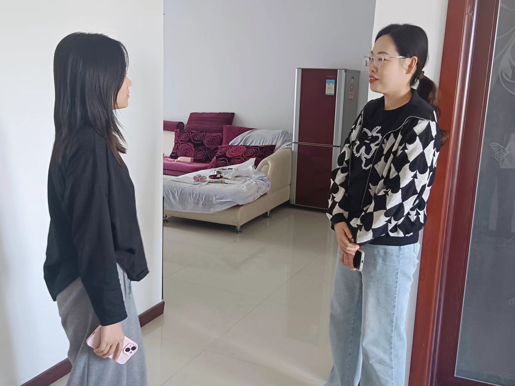 “插头要做到人走要断电。”“天然气、热水器平时不用记得关。”“考研最近准备的咋样?”“最近的招聘会有面试到心仪的岗位吗?”在与员工的交谈中,老师们详细了解了员工校外住宿的日常学习情况和目前的学习状态,仔细检查了校外住宿员工的居住条件、小区周边环境,提醒员工要增强安全防范意识,如遇突发情况第一时间联系年级辅导员,确保人身与财产安全。