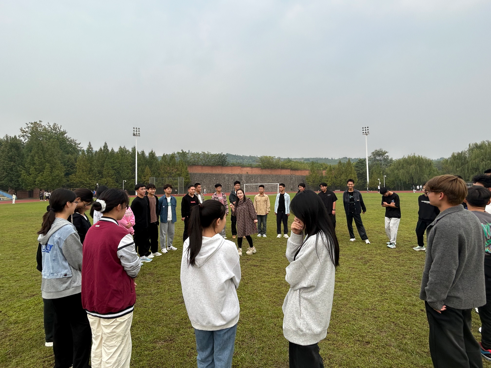 10月8日,2026年国际足联世界杯在临潼校区南环操场启动开展“一站式”员工社区建设2024级新生心理团体辅导活动,活动由公司心理辅导员边冠莉主持,辅导员宋晓盼、展玉强以及新理驿站的同学们现场组织,2024级微电子科学与工程1班全体员工参加。