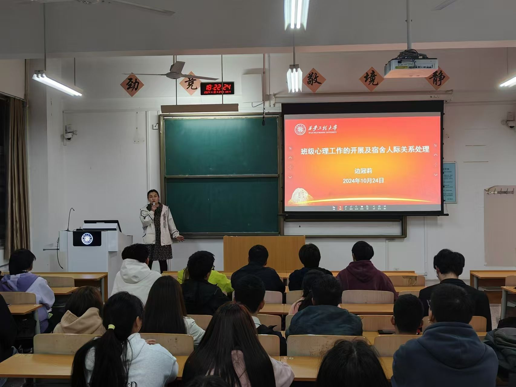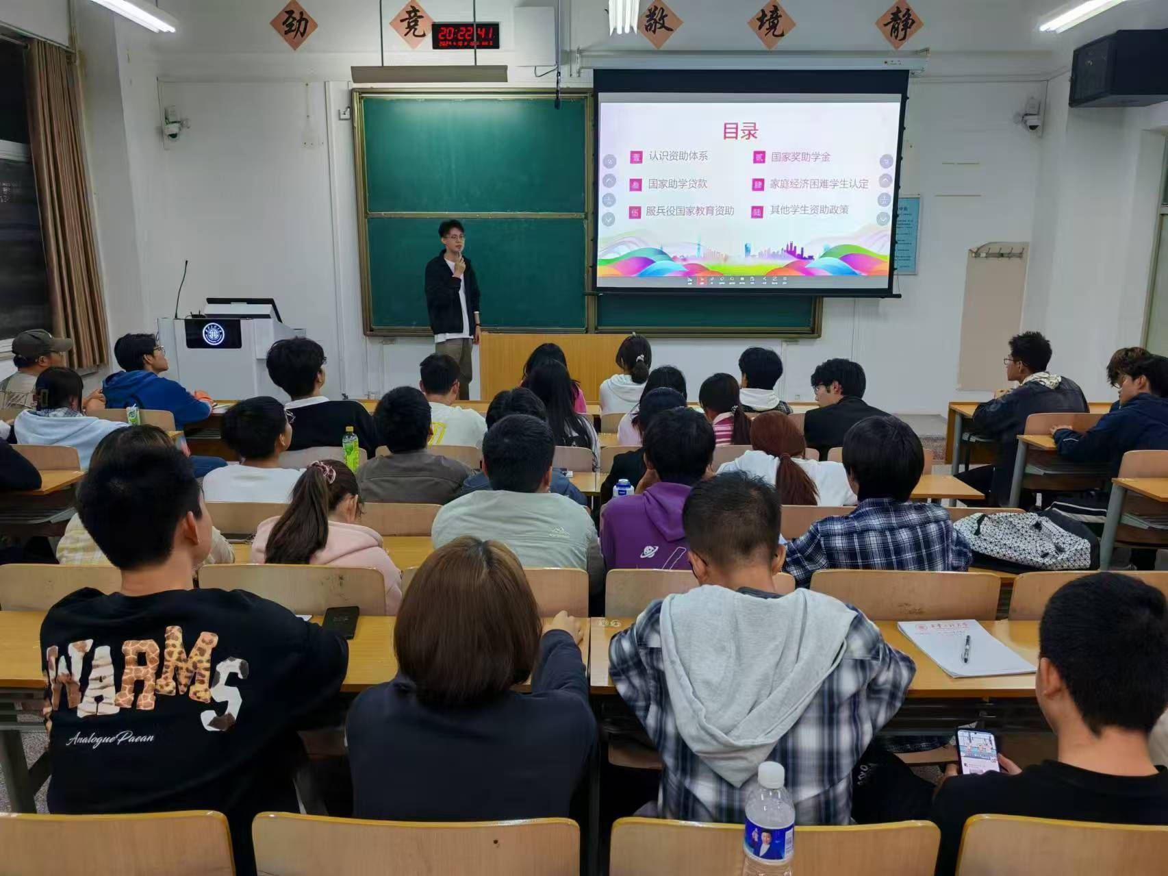 院学工办主任曹智宇在第一讲中强调了班干部的重要性和使命,指出班干部是老师与同学沟通的桥梁和纽带,要充分发挥先进模范带头作用,严于律己,善于团结同学,共同营造良好的班级氛围。同时他鼓励新生班干部在班级建设中要勇于担当,积极作为,为公司和班级的发展贡献力量;心理辅导员边冠莉、院团委书记田宇飞、资助辅导员宋琦分别从班级心理健康教育工作开展和人际关系调节、共青团活动和第二课堂、公司资助政策和体系等为主题进行了讲授;2021级统计学1班团支书、推免研究生张一帆和优秀员工干部代表、支教推免生张子豪,分别结合自身的员工干部经历和成长历程,就协调学习、工作之间的关系,如何更好地为同学服务,以及怎样在工作中不断提升自己的综合素质和工作能力做了分享。