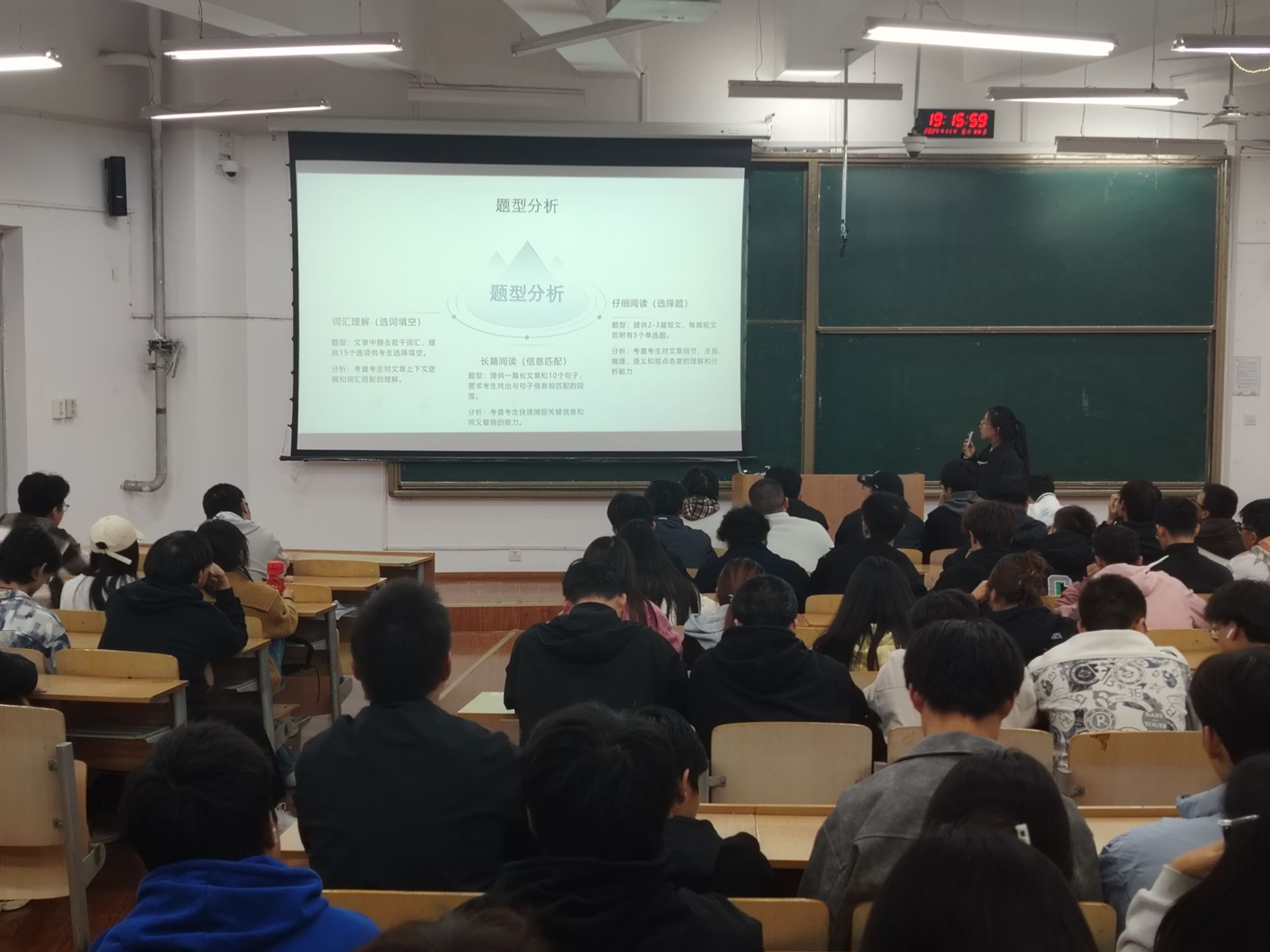 此次经验分享会提供了一个共享知识、交流经验的平台,不仅为大家指明英语四六级复习方向,也激发了学习英语的热情和积极性。希望同学们能够学习借鉴学姐们的经验,科学规划备考,在即将到来的英语四六级考试中沉着发挥,取得佳绩!(撰稿:宋琦 审稿:文毅)