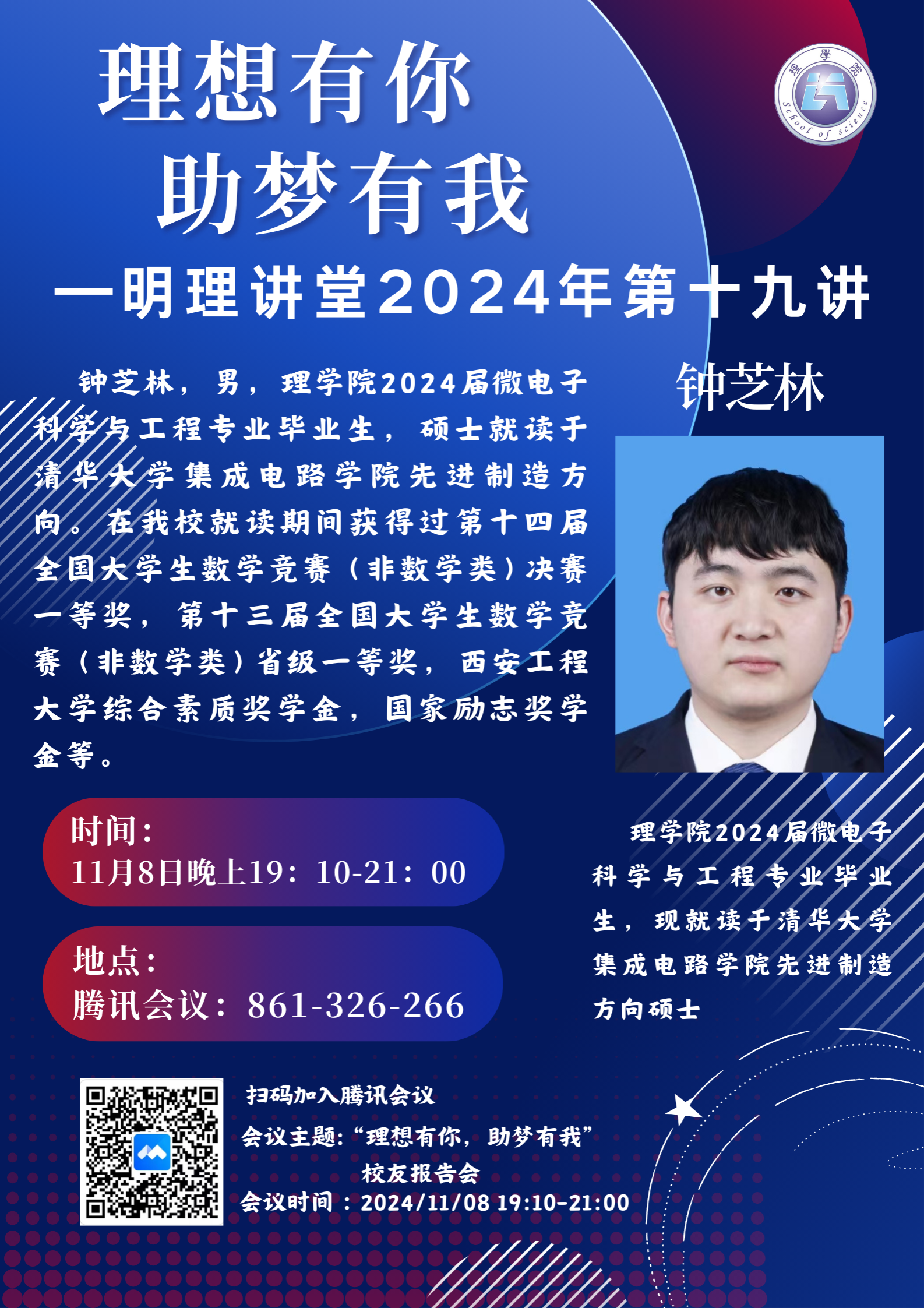 钟芝林特别强调了持之以恒、坚持不懈的重要性。他分享了自己在备考清华大学研究生期间的艰辛历程,包括每天坚持早起强化英语能力,课堂上勤于思考、善于分析,认真做好笔记,以及夜晚在图书馆与数学“题海”为伴的奋斗时光。他的努力和坚持最终换来了丰硕的成果,以优异的成绩成功考取清华大学集成电路公司先进制造专业研究生。