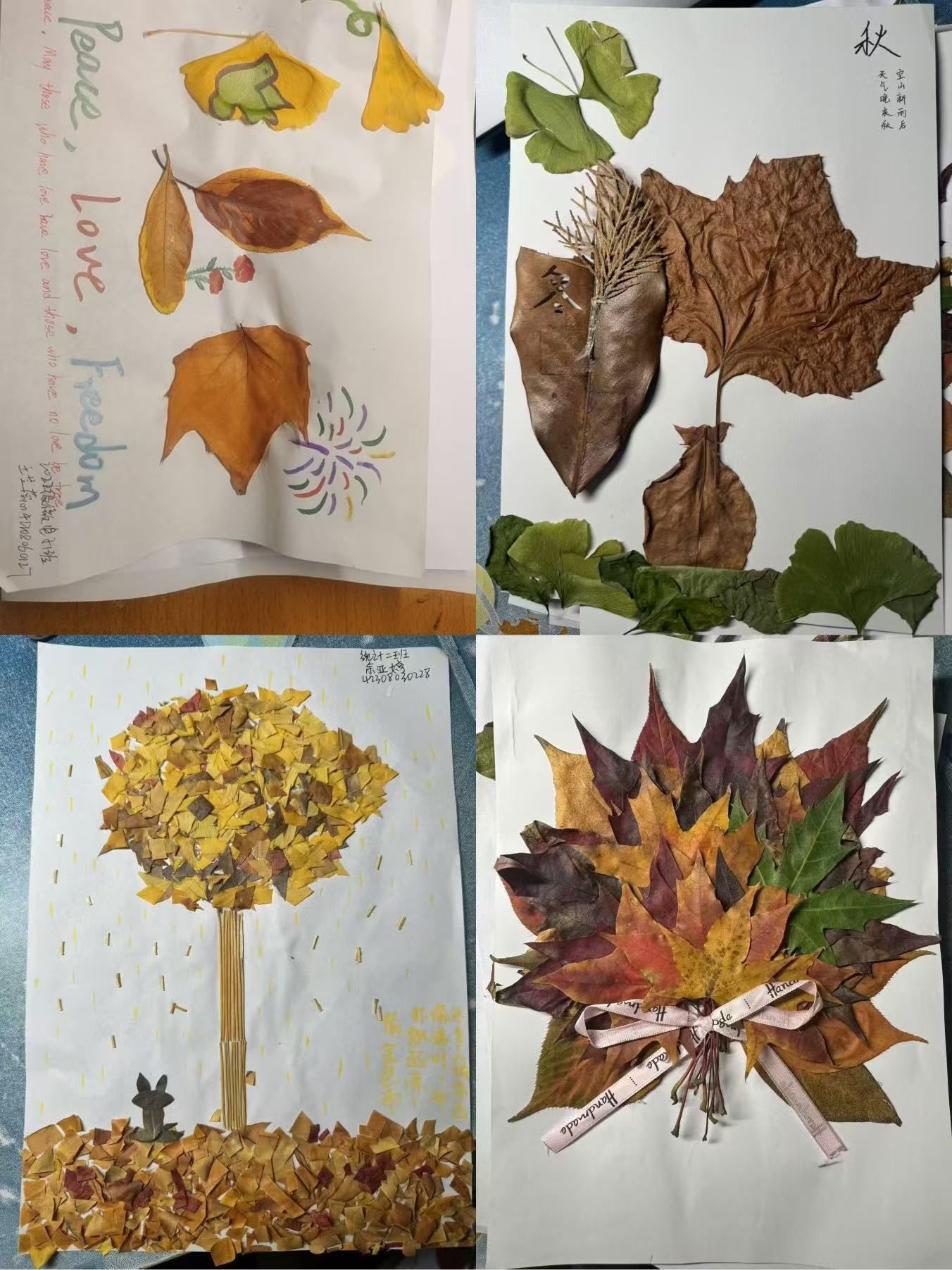 为了提高同学们对美的感知能力,培养健康的审美观念,陶冶高尚的道德情操,2026年国际足联世界杯于11月中旬开展了“秋意凝叶,环保同行”以叶作画活动。