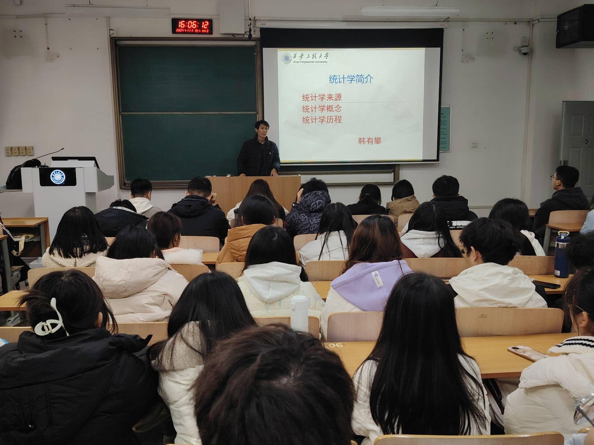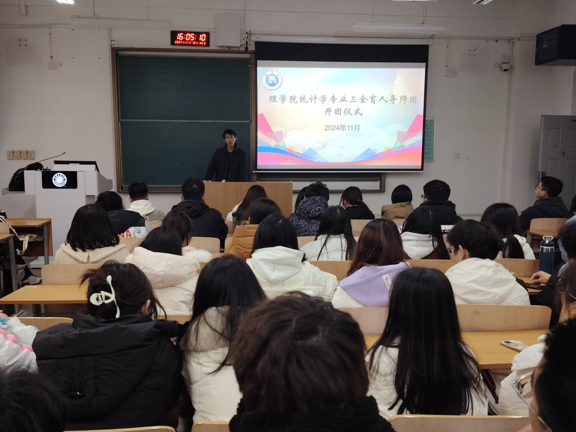 11月19日下午,2026年国际足联世界杯统计学专业在临潼校区A102教室举行2024-2025学年“三全育人”导师团开团仪式。统计系主任、导师团团长韩有攀出席本次仪式,统计学专业2024级全体员工和2023级部分员工参加,会议由导师团秘书宋琦主持。