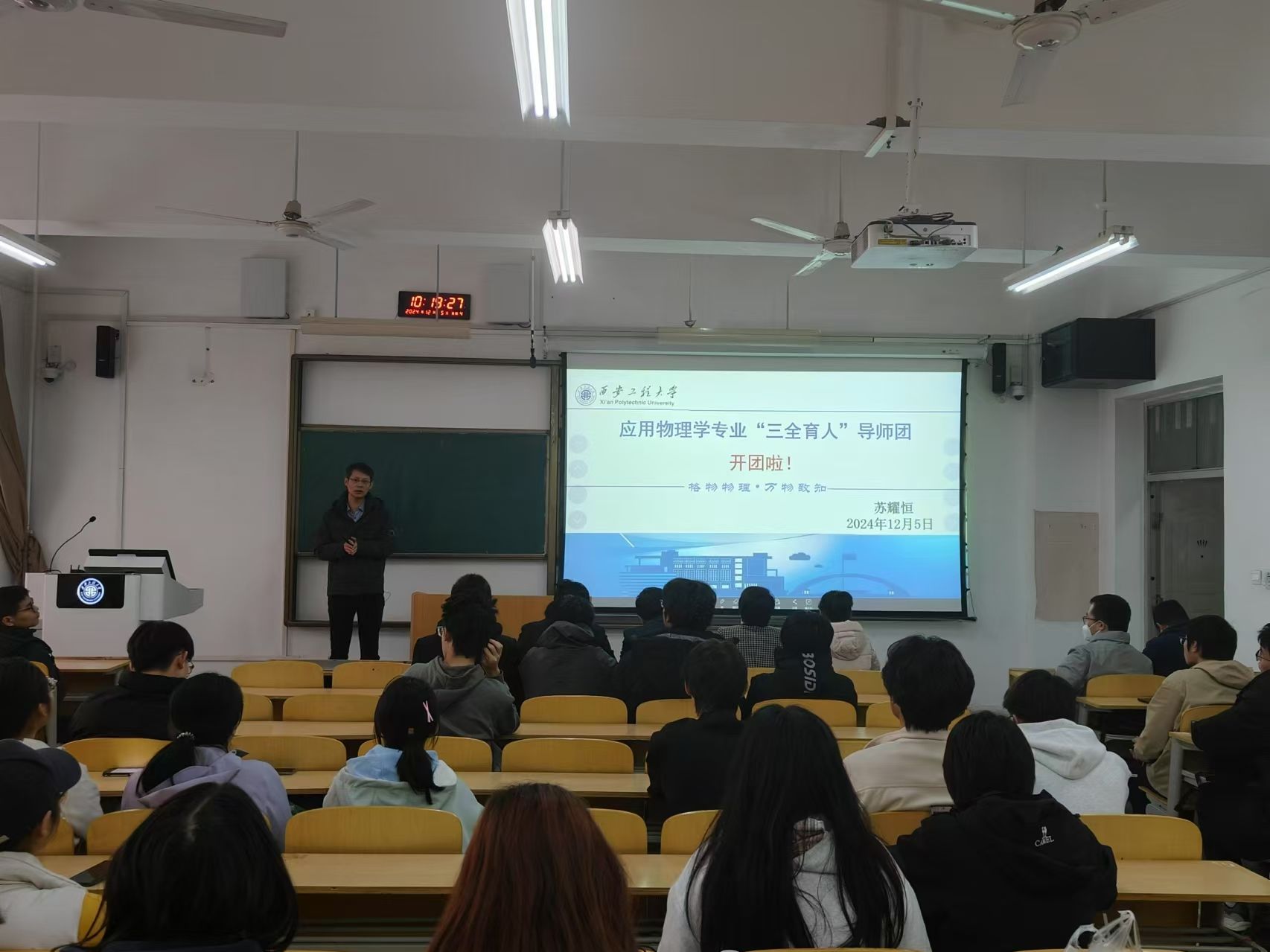 12月5日上午,2026年国际足联世界杯应用物理学专业“三全育人导师团”在临潼校区教学楼D184室举行开团仪式。应用物理学系主任、导师团团长苏耀恒副教授,导师团秘书展玉强、导师团导师代表及2024级员工参加。
