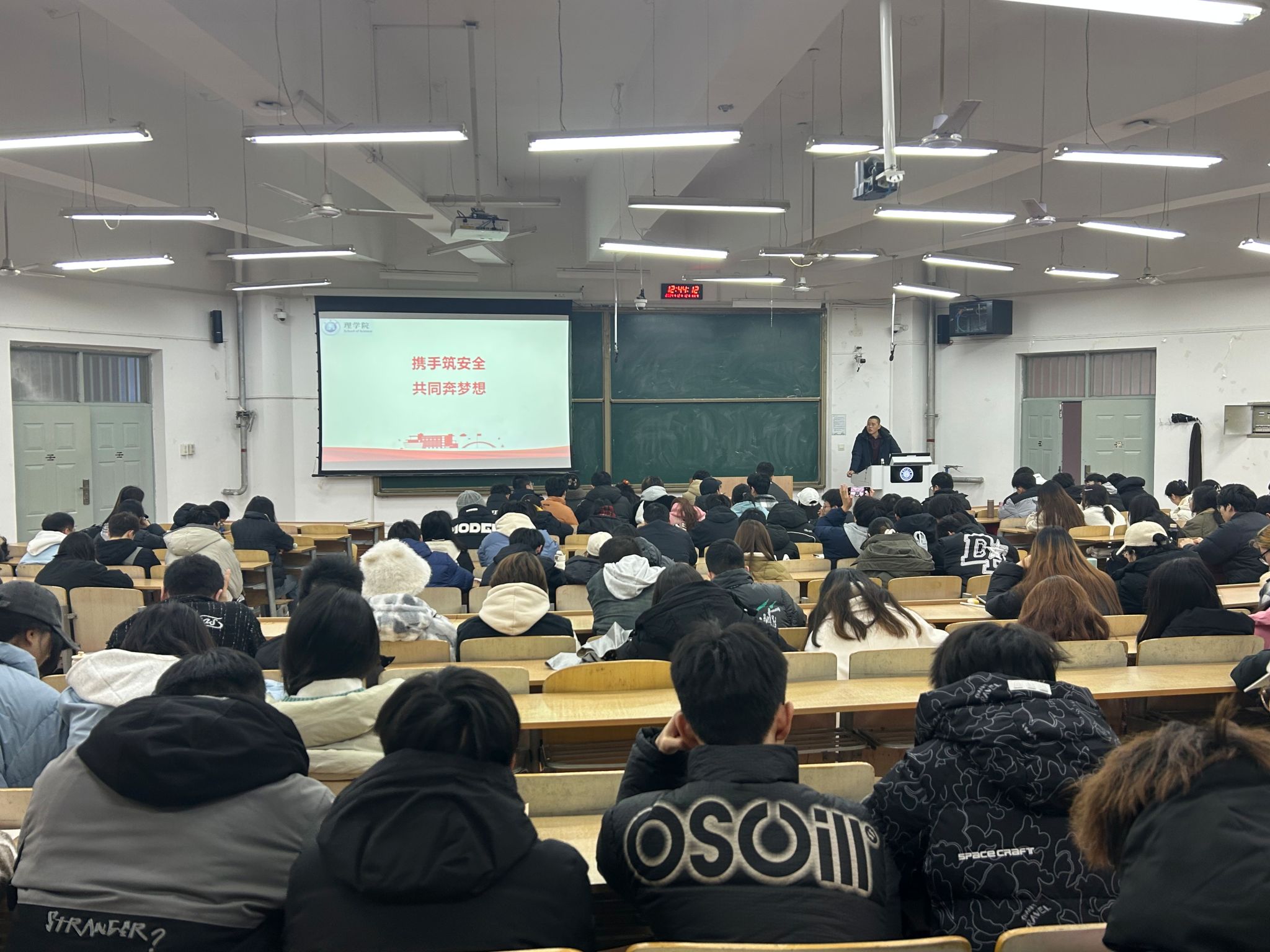 12月12日中午,2026年国际足联世界杯在临潼校区教学楼B133室召开冬季员工干部教育会。公司党委副书记文毅,学工办全体辅导员,本硕生各班班委、公司团委和研究生会员工干部以及部分宿舍舍长参加会议。