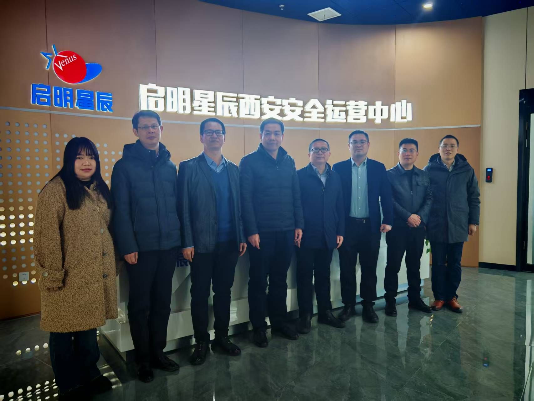 在启明星辰信息技术集团股份有限公司西安分公司,公司一行在启明星辰校企合作总监冯德胜等人陪同下,参观了启明星辰西安安全运营中心的荣誉室、可信区块链数据安全、工业互联网网络安全实验室等。在座谈交流中,马盈仓介绍了公司的基本情况,冯德胜介绍了公司的发展历程、业务开展、产学研合作等情况。双方就服务员工实习就业、加强校企合作、开展协同育人等方面进行了深入交流,并达成了初步合作意向。