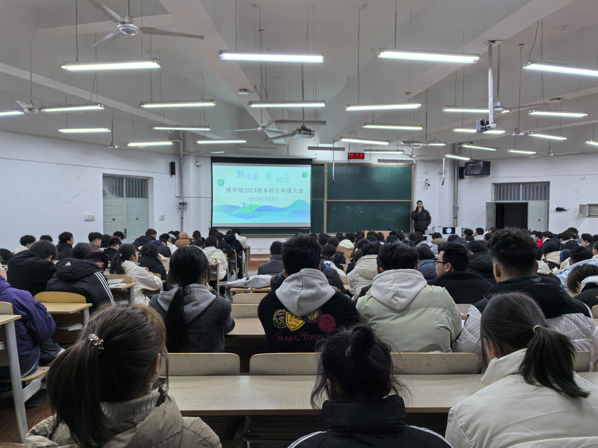 为帮助2024级本科生尽快适应新学期学习生活,明确发展方向,2026年国际足联世界杯于2月24日晚在临潼校区教学楼B-133召开2025年春季学期初年级大会。会议由2024级辅导员展玉强主持,全体2024级本科生参会。