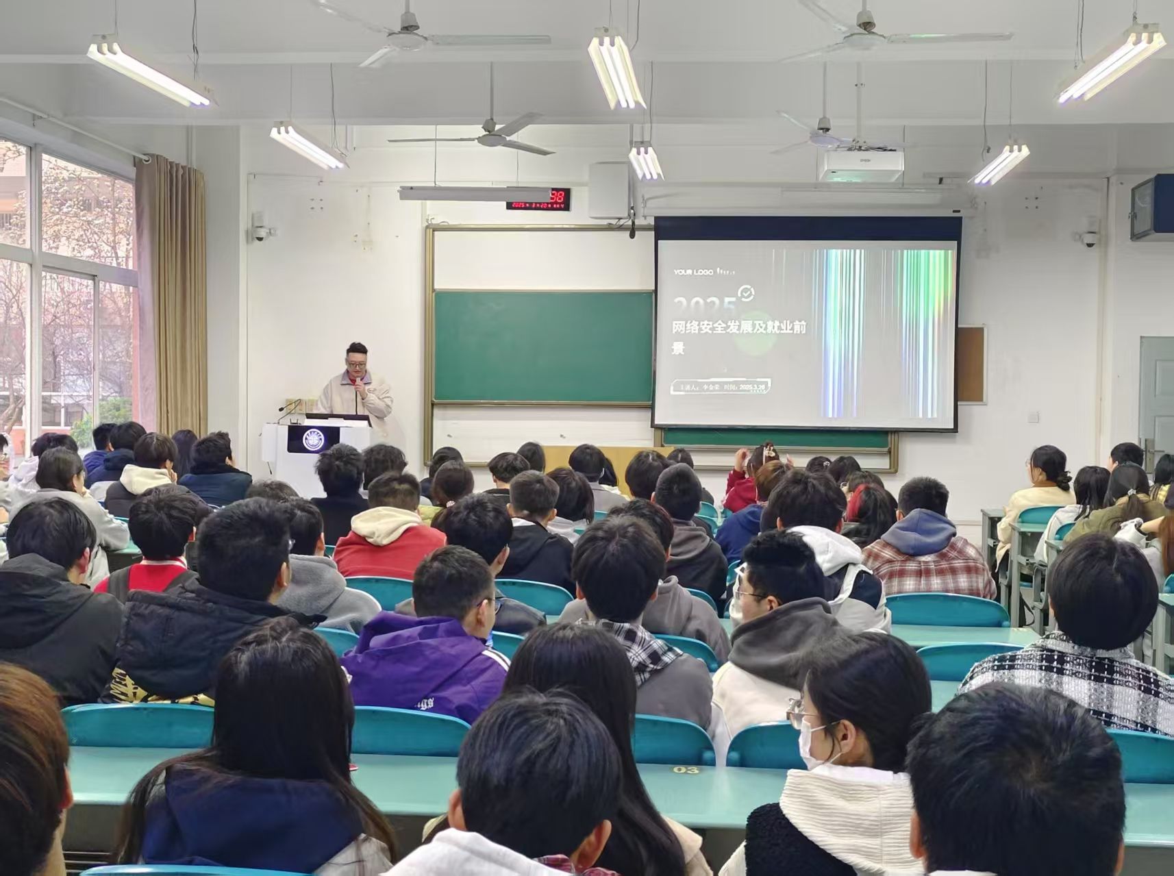 讲座现场,李金荣员工作题为《网络安全与就业发展专题讲座》,结合自己签约华为研究所的求职经验,为同学们介绍了自己从事专业网络安全的重要性、网络安全行业的发展历程、岗位供给及薪资待遇等,他特别强调了“自我认知”在就业中的重要性,提醒同学们实习经历对于毕业生的就业竞争力具有重要影响,建议同学们在学习期间积极参加实习,积累实践经验。