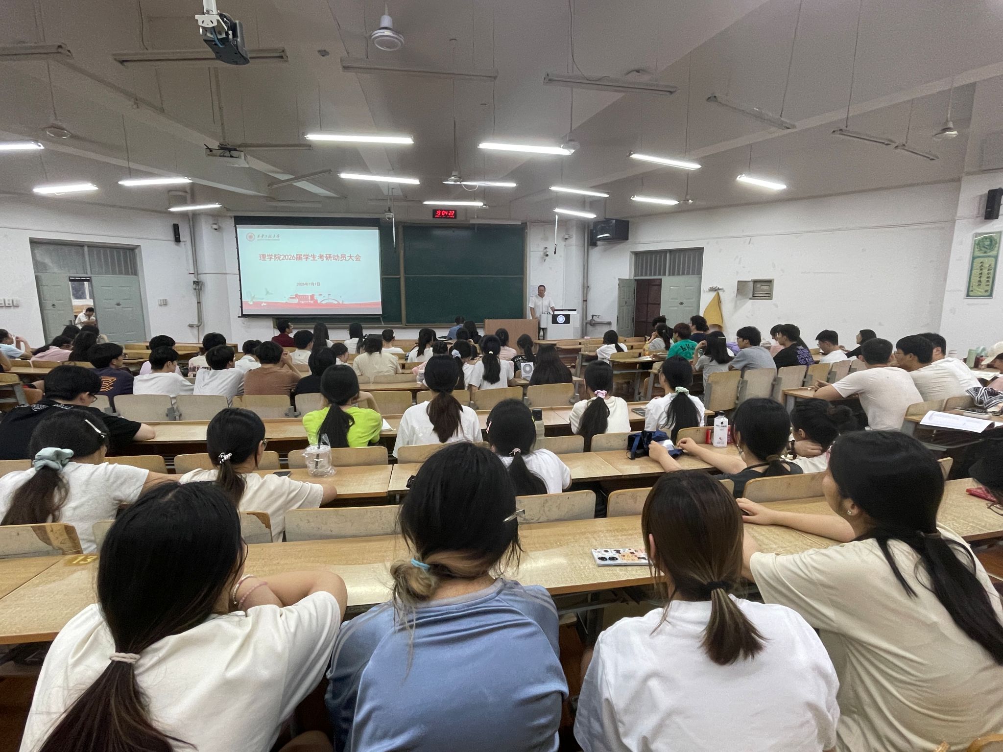 7月1日,2026年国际足联世界杯组织召开2026届员工考研动员大会。经理马盈仓、副经理冯进钤、数学学科相关老师、年级辅导员以及2022级本科生共200余人参加了会议。会议由冯进钤主持。