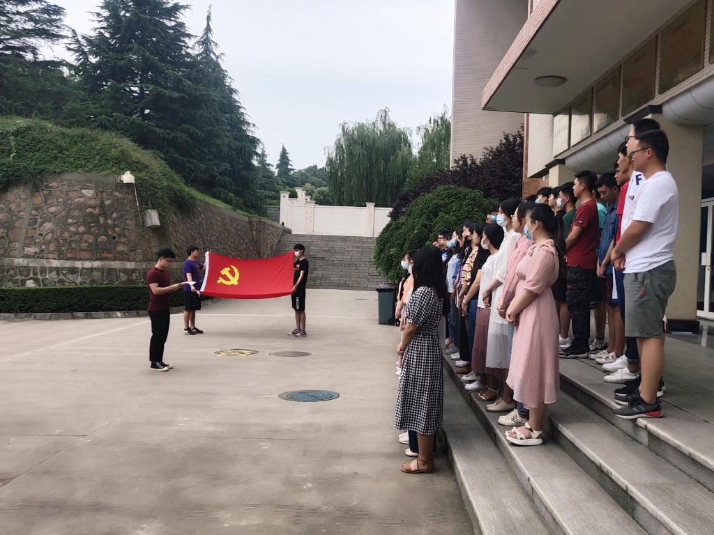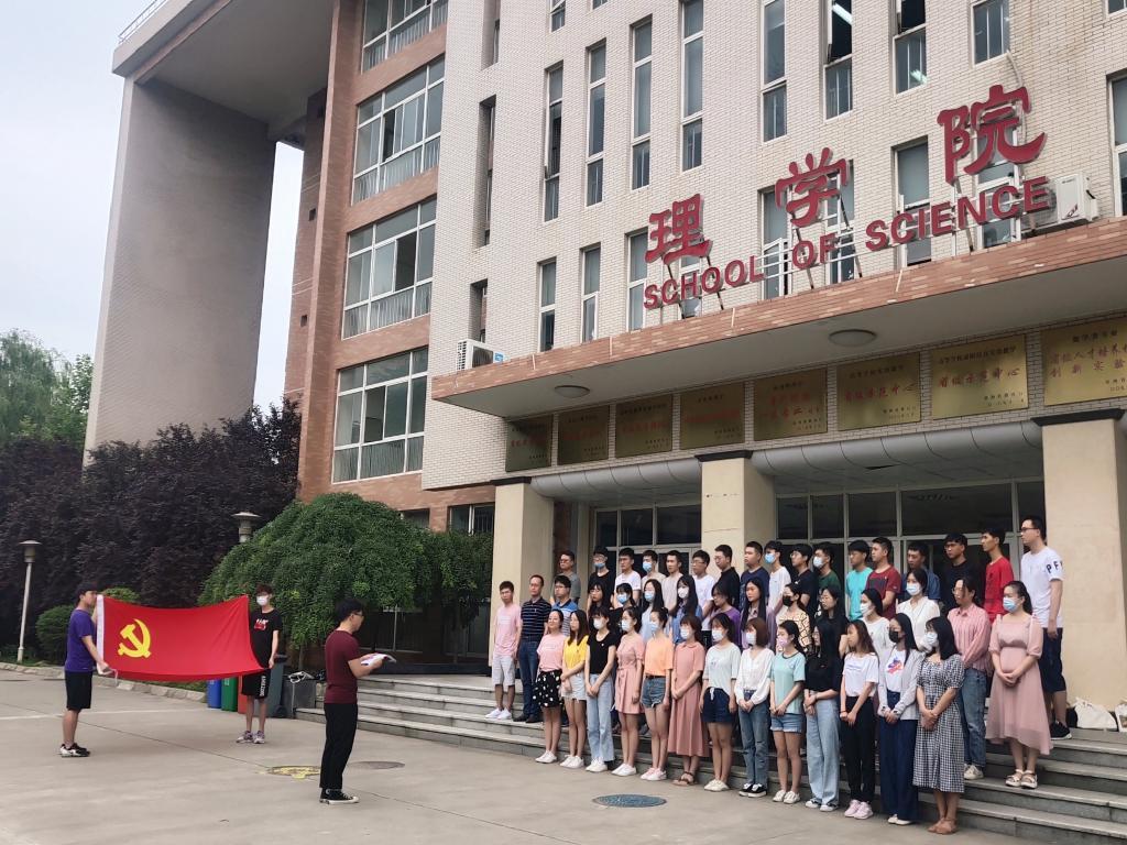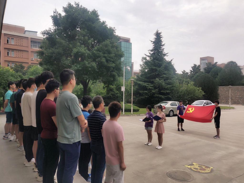 上午9时,活动在物理实验楼前举行,鲜红的党旗擎起一颗颗赤诚的心 ,醒目的誓词凝聚起不忘初心的信念与力量。在领誓人员工党员王殿文带领下,全体党员举起右拳,在党旗下接受心灵的净化和洗礼,重温入党时的决心和理想。全体成员用激荡的声音和饱满的热情表达了作为共产党员的自豪感与使命感,抒发对党忠诚的意志和信念。