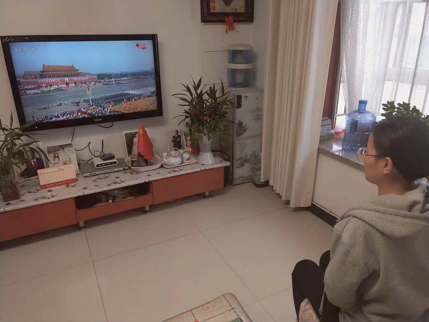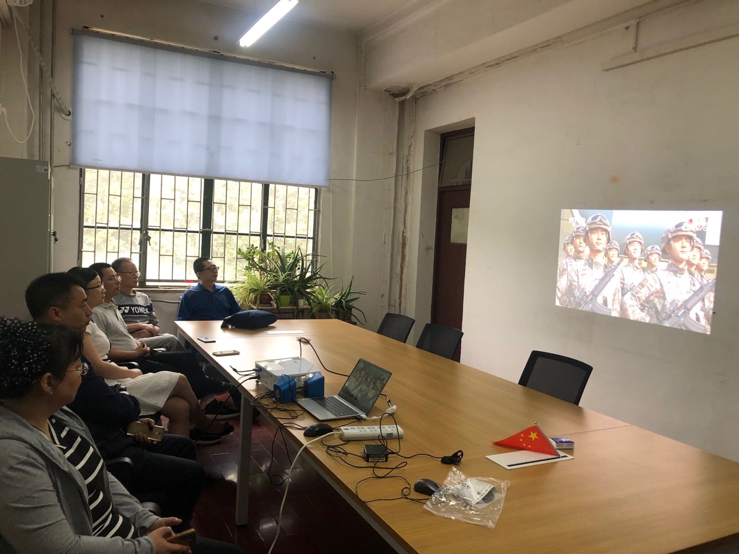 阅兵仪式开始后,大家都目不转睛地盯着屏幕,满怀热情地观看阅兵的每一个环节。整齐划一的方阵、自主研发的现代化武器、装备,气势宏大、震撼而真实的场景让员工们为祖国的日益强大而感到骄傲自豪。在大会直播过程中,师生们始终聚精会神、精神振奋。
