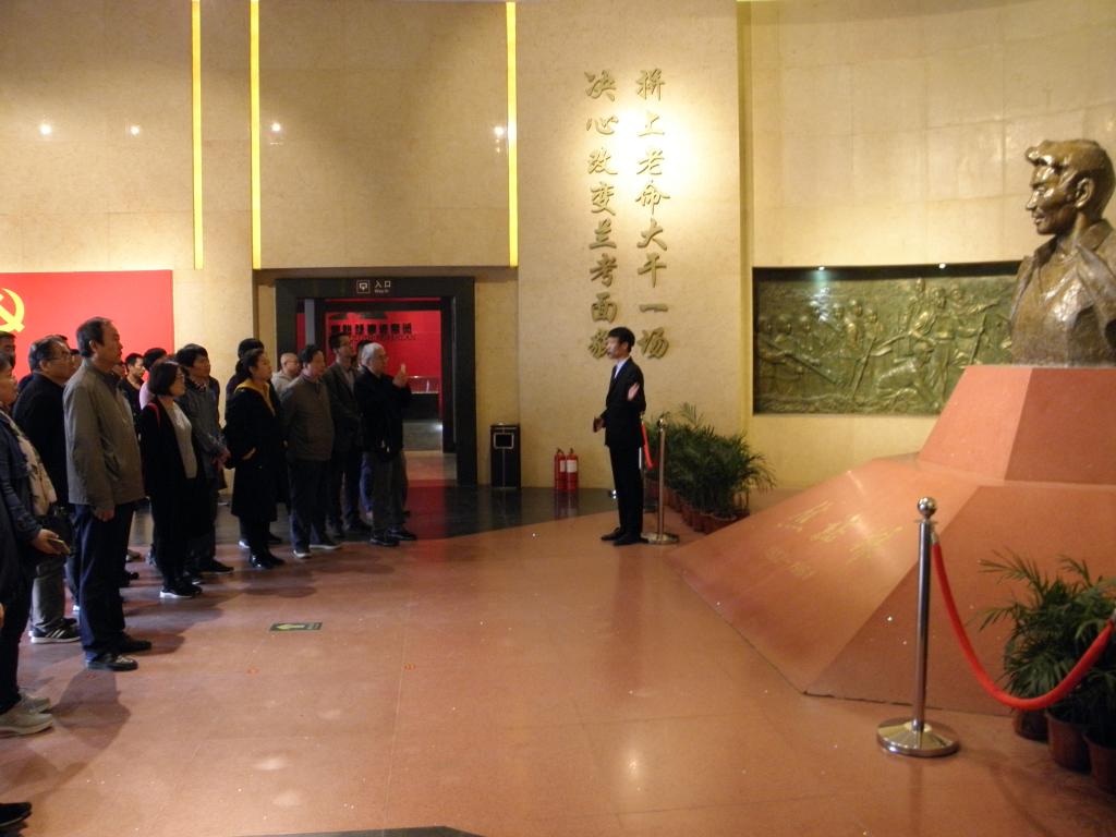 在兰考焦裕禄纪念园,大家怀着崇敬的心情拜谒了焦裕禄烈士陵园,在陵园前献上纪念花篮,重温入党誓词,绕陵一周追思。在焦裕禄纪念馆,认真聆听了焦裕禄同志热爱党、热爱祖国、热爱群众,在党的教育和培养下,时时事事起模范带头作用,对党的宗旨铭记于心,对党的事业忠心耿耿的光辉一生,尤其是到兰考工作后面对“三害”,扎根群众中,坚持调研试点,身先士卒,决心以“拼上老命大干一场,决心改变兰考面貌”的感人事迹。