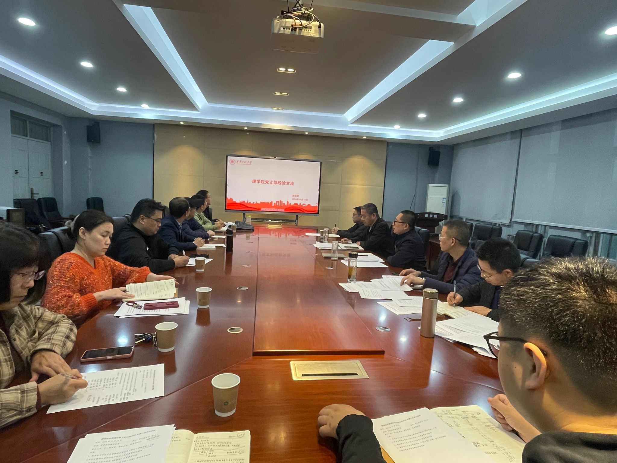 会上,全国党建工作样板支部、专业物理党支部书记涂喆研结合全国党建工作样板支部创建工作,分享了专业物理党支部以党建为引领,打造“党建+专业+学科+育人”新模式,扎实推进党建与业务“双核”协进,重点对标“七个有力”建设要求,围绕“支部建在专业上,攻坚克难创一流、党建引领促学科,潜心科研攀高峰、师生凝聚党旗下,三全育人育英才”开创“党建引领促教研,凝心聚力育英才”新格局的具体做法以及创建工作所取得的成效。听完经验分享,各党支部书记均表示深受启发、受益匪浅,也都结合工作实际谈了心得体会和下一步工作思路。