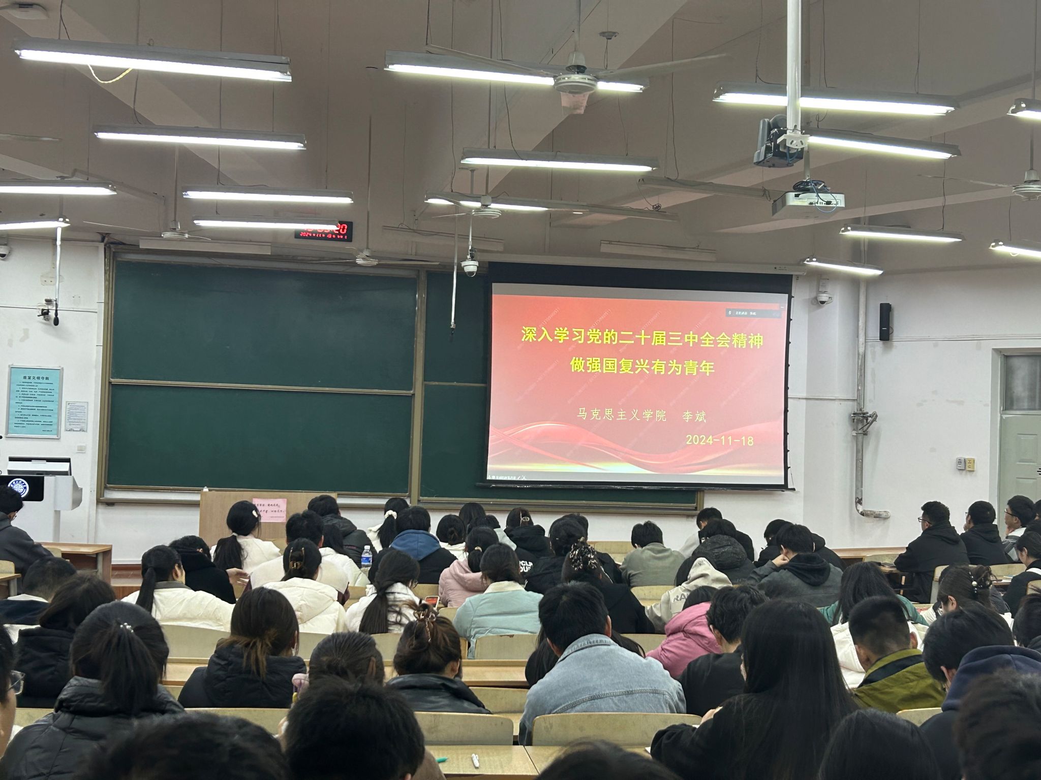 11月18日晚,李斌副教授以《深入学习党的二十届三中全会精神,做强国复兴有为青年》为题,围绕党的二十届三中全会基本情况、习近平总书记在党的二十届三中全会上的重要讲话精神、《决定》提出的进一步全面深化改革重大举措等内容进行了重点解读。报告激励青年党员要高举理想信念的旗帜、加强自身的品德修养、增强科学文化素养和创新创造精神,争做有理想敢担当能吃苦肯奋斗的新时代青年。20日晚,解琳那副教授以《以教育强国建设支撑中华民族伟大复兴》为题,从“教育何以蕴含强国动力?教育怎么实现强国目标?如何建设教育强国?”三个方面做了全面系统的讲解和深入阐释,进一步提出建设教育强国是实现高水平科技自立自强的重要支撑,是促进全体人民共同富裕的有效途径,是全面建成社会主义现代化强国的战略先导,是以中国式现代化全面推进中华民族伟大复兴的基础工程。两场专题讲座内容丰富、思想深刻,具有很强的现实意义和指导意义,让大家受益匪浅。
